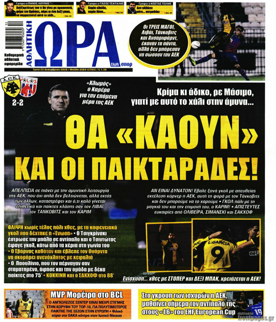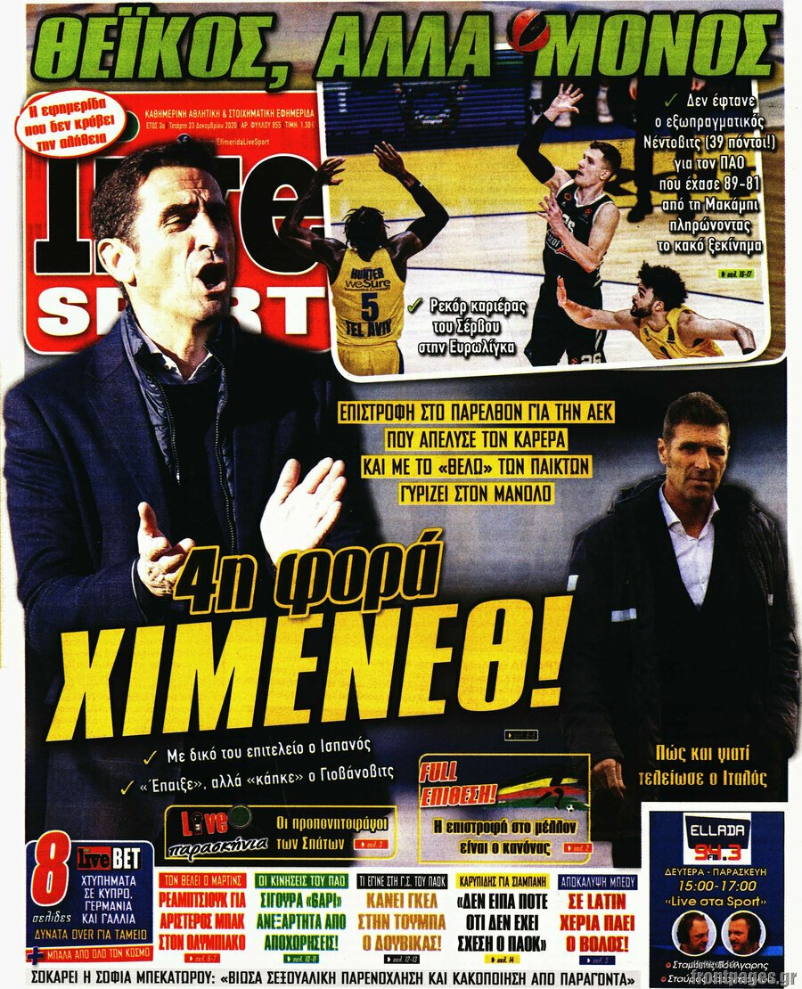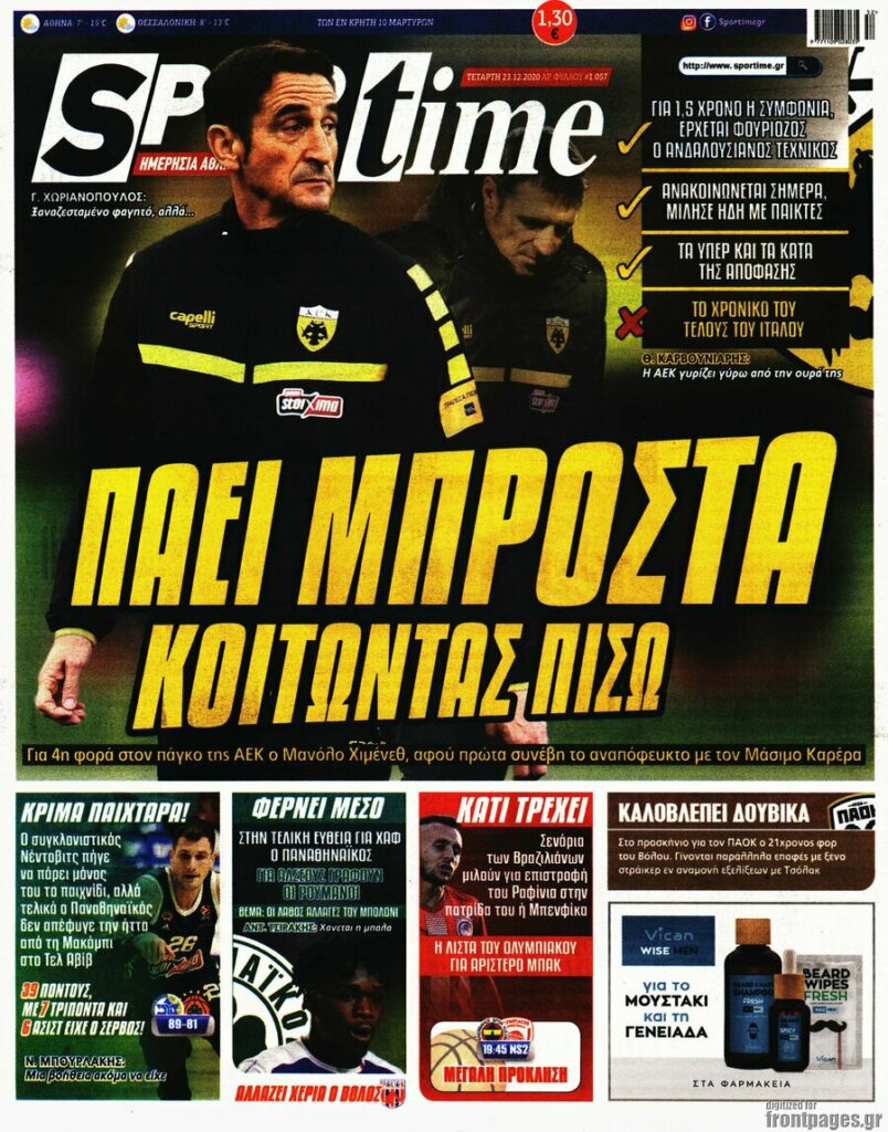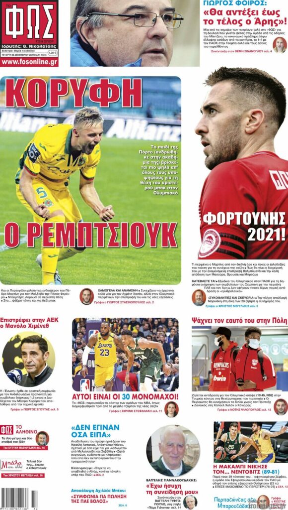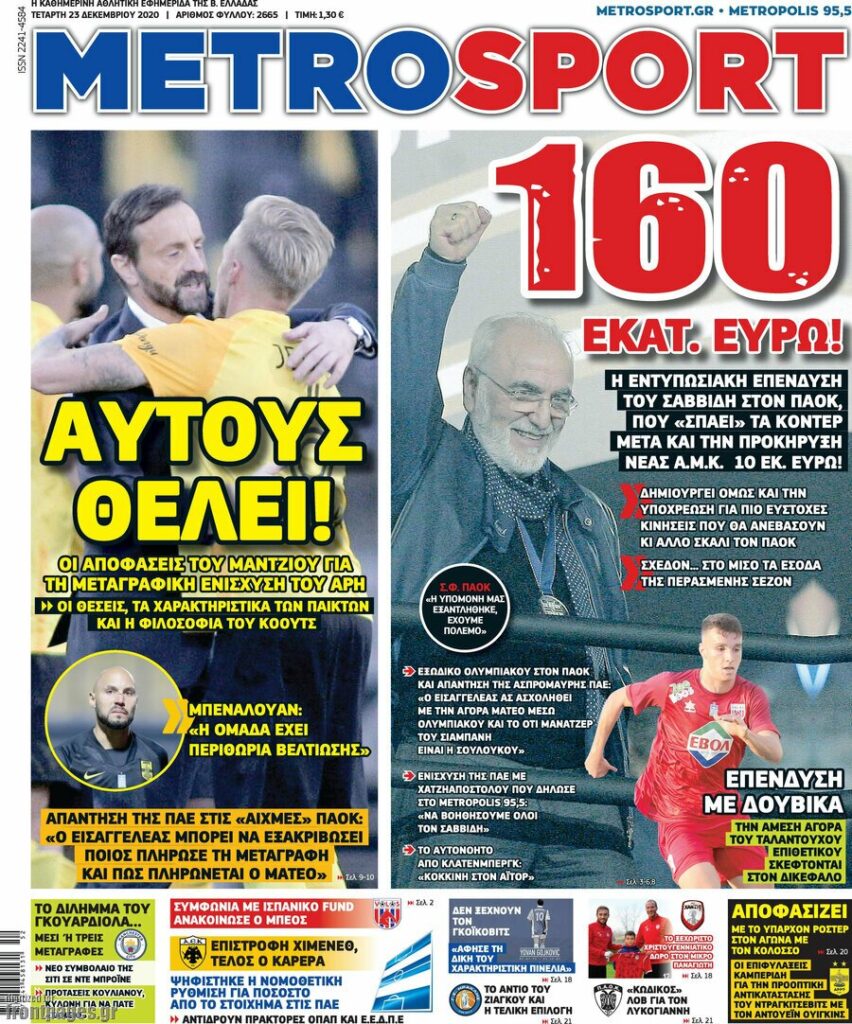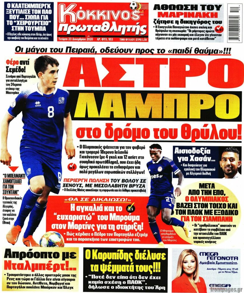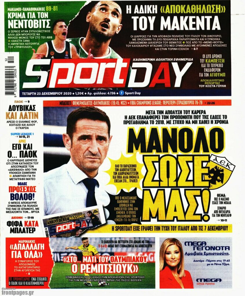 MEDIA Οι πρώτες σελίδες των αθλητικών εφημερίδων, σήμερα Τετάρτη 23 Δεκεμβρίου FacebookTwitterPinterestWhatsApp Οι πρώτες σελίδες των αθλητικών εφημερίδων, σήμερα Τετάρτη 23 Δεκεμβρίου: