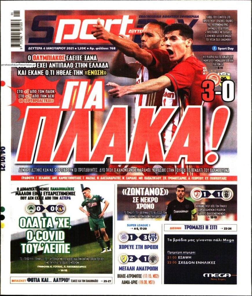 MEDIA Οι πρώτες σελίδες των αθλητικών εφημερίδων, σήμερα Δευτέρα 4 Ιανουαρίου FacebookTwitterPinterestWhatsApp Οι πρώτες σελίδες των αθλητικών εφημερίδων, σήμερα Δευτέρα 4 Ιανουαρίου:
