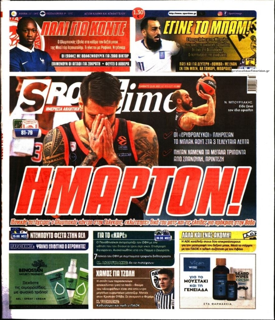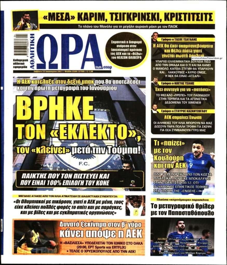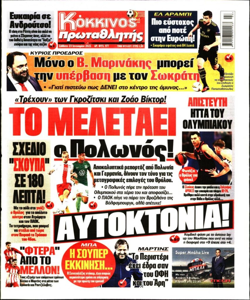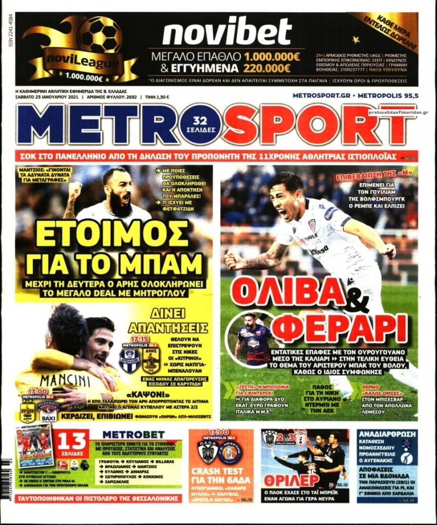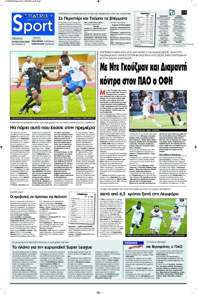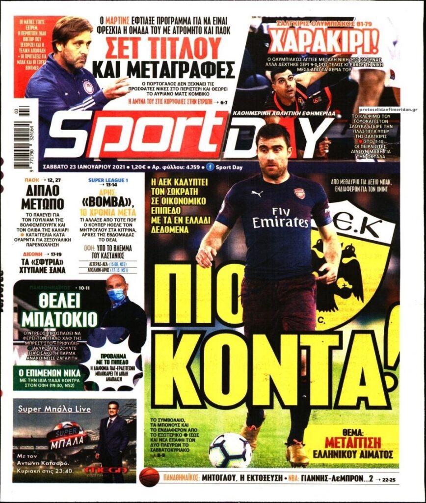 MEDIA Οι πρώτες σελίδες των αθλητικών εφημερίδων, σήμερα Σάββατο 23 Ιανουαρίου FacebookTwitterPinterestWhatsApp Οι πρώτες σελίδες των αθλητικών εφημερίδων, σήμερα Σάββατο 23 Ιανουαρίου: