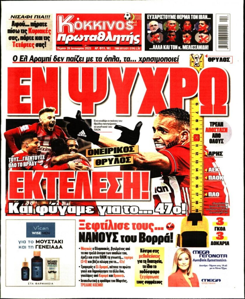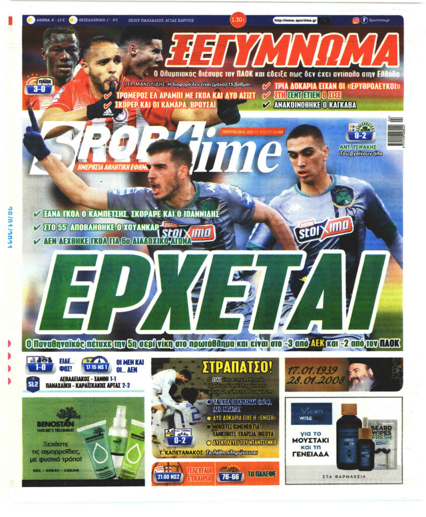 MEDIA Οι πρώτες σελίδες των αθλητικών εφημερίδων, σήμερα Πέμπτη 28 Ιανουαρίου FacebookTwitterPinterestWhatsApp Οι πρώτες σελίδες των αθλητικών εφημερίδων, σήμερα Πέμπτη 28 Ιανουαρίου: