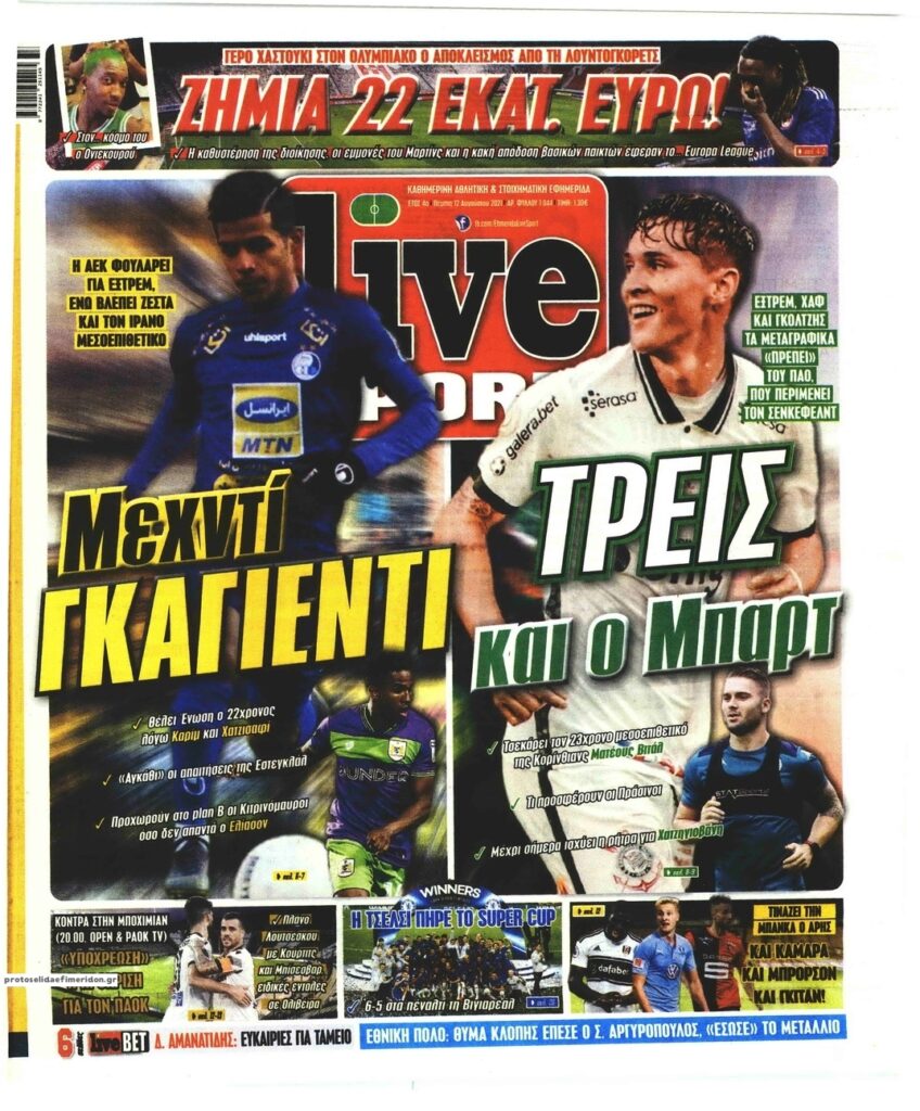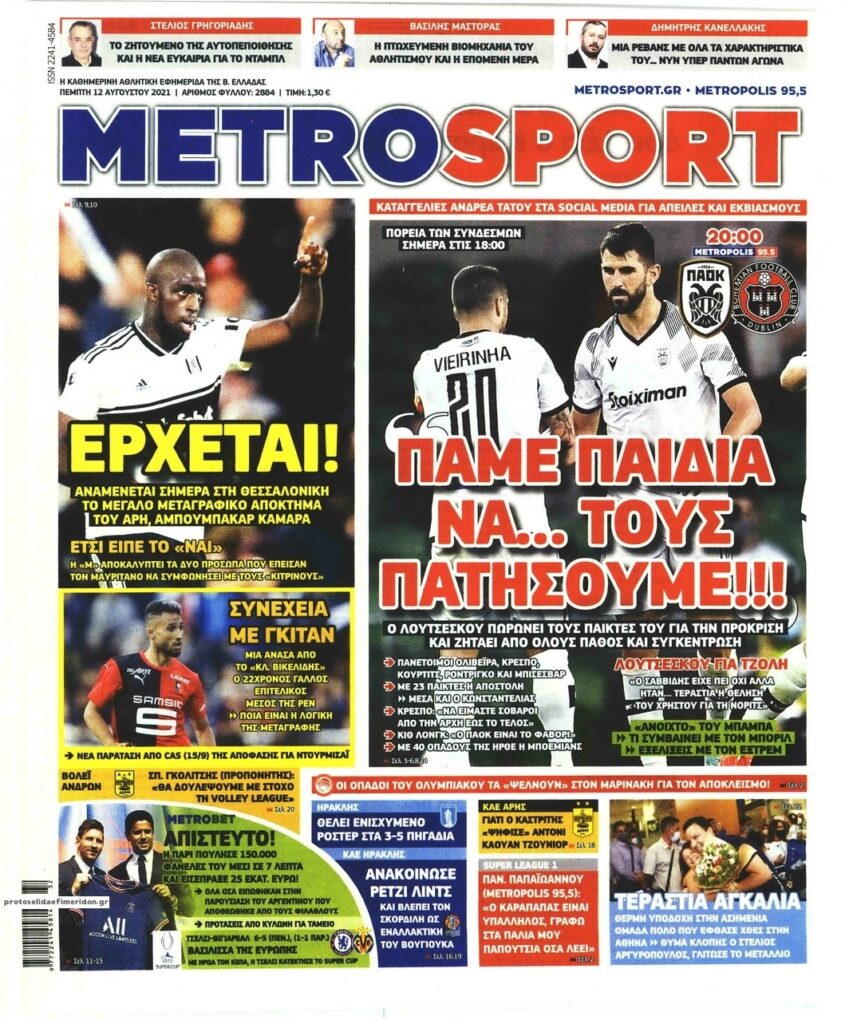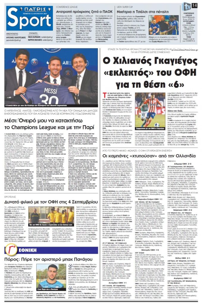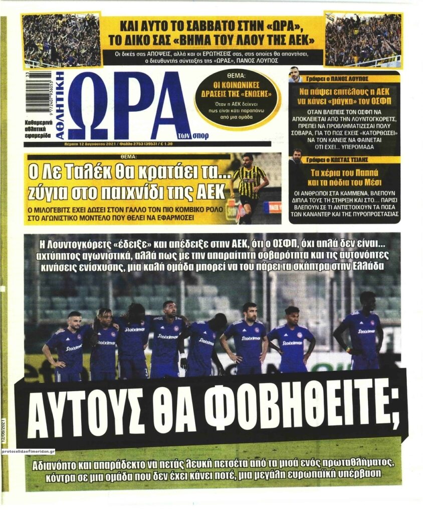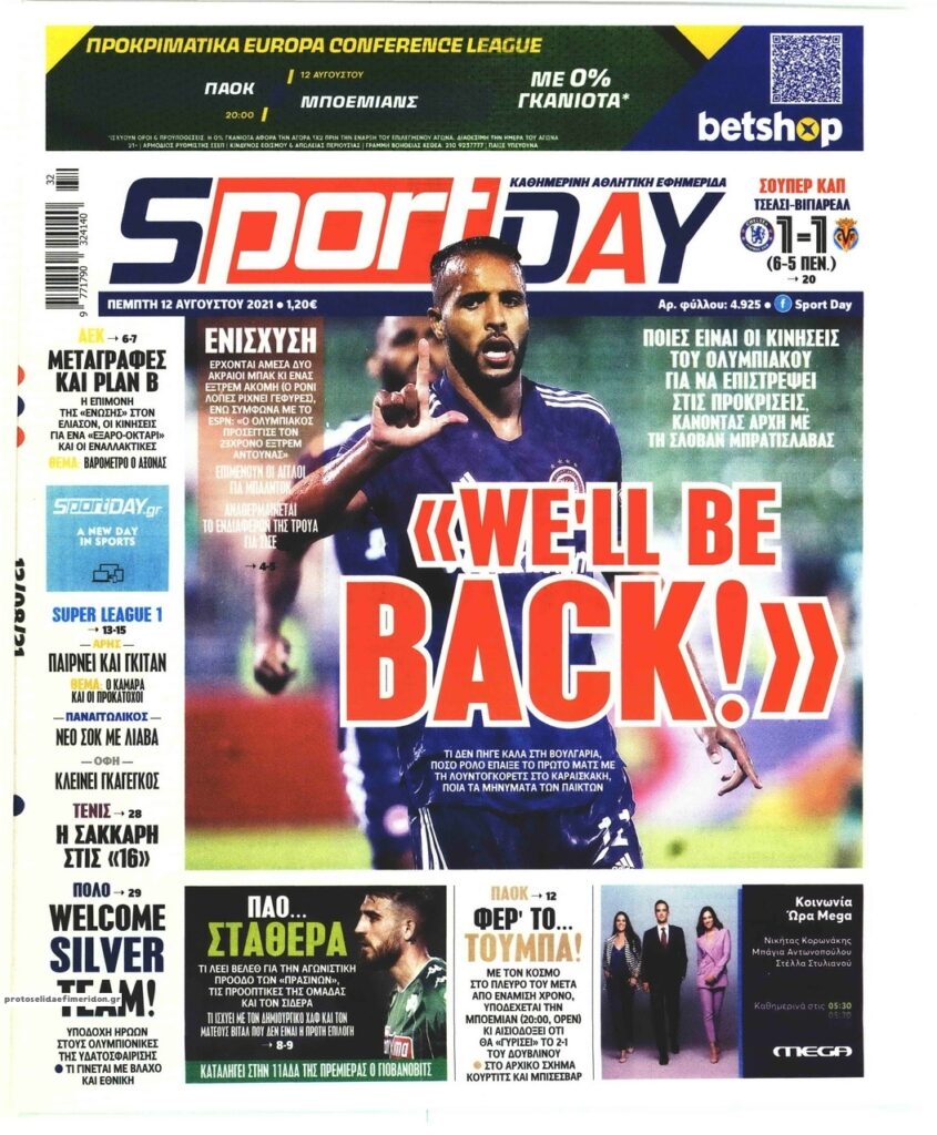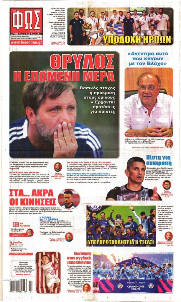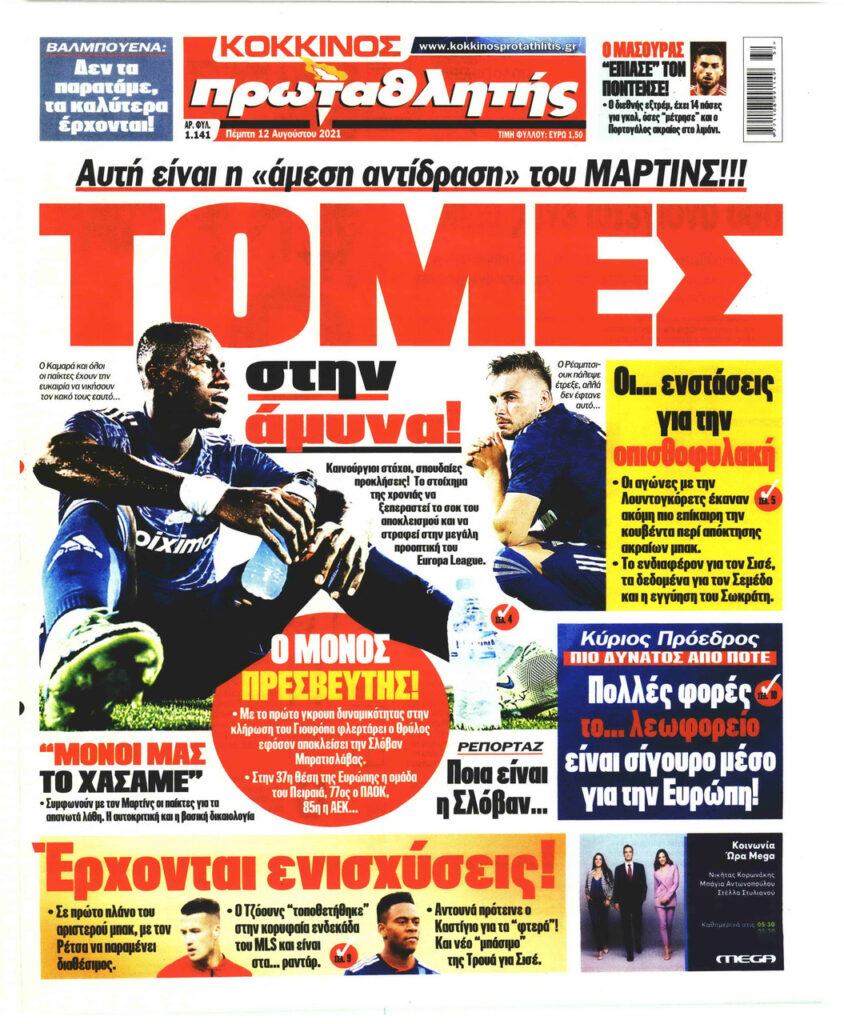 MEDIA Τα πρωτοσέλιδα των αθλητικών εφημερίδων, σήμερα Πέμπτη 12 Αυγούστου FacebookTwitterPinterestWhatsApp Τα πρωτοσέλιδα των αθλητικών εφημερίδων, σήμερα Πέμπτη 12 Αυγούστου: