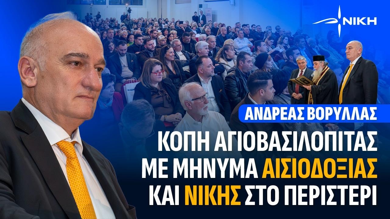 Με ιδιαίτερη επιτυχία και σε ένα κλίμα ενθουσιασμού, αισιοδοξίας και ενότητας πραγματοποιήθηκε χθες (16 Φεβρουαρίου 2026) η Κοπή της Πρωτοχρονιάτικης Πίτας από τον Βουλευτή Δυτικού Τομέα Αθηνών του Κινήματος ΝΙΚΗ Ανδρέα Βορύλλα, στο Συνεδριακό Κέντρο Περιστερίου, παρουσία περισσότερων από 600 φίλων και υποστηρικτών του Κινήματος.