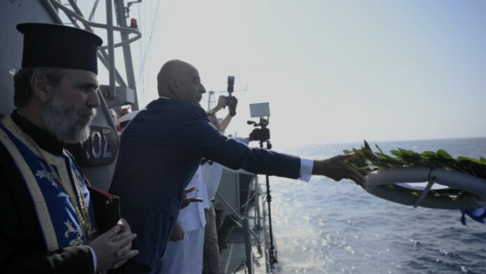 Το πρωί της Παρασκευής ο υπουργός απέτισε φόρο τιμής στους πεσόντες αξιωματικούς και ναύτες του Πολεμικού Ναυτικού, στο πλαίσιο της επετείου. Ο κ. Δένδιας μαζί με τον Αρχηγό ΓΕΝ Αντιναύαρχο Δημήτριο Ε. Κατάρα παρέστησαν στην επιμνημόσυνη δέηση επί της πυραυλακάτου (ΤΠΚ) «Μυκόνιος», στη θαλάσσια περιοχή της Τήνου, και στη ρίψη στεφάνου στον υγρό τάφο των πεσόντων της «Έλλης».