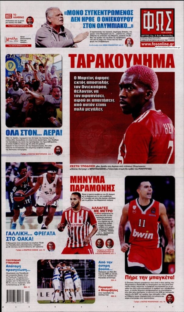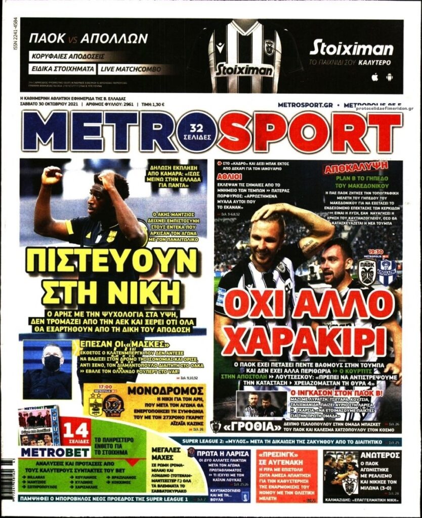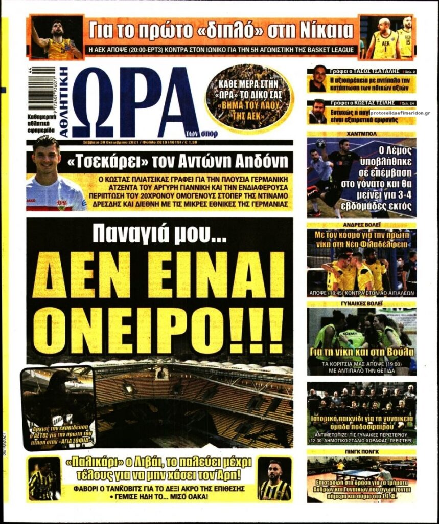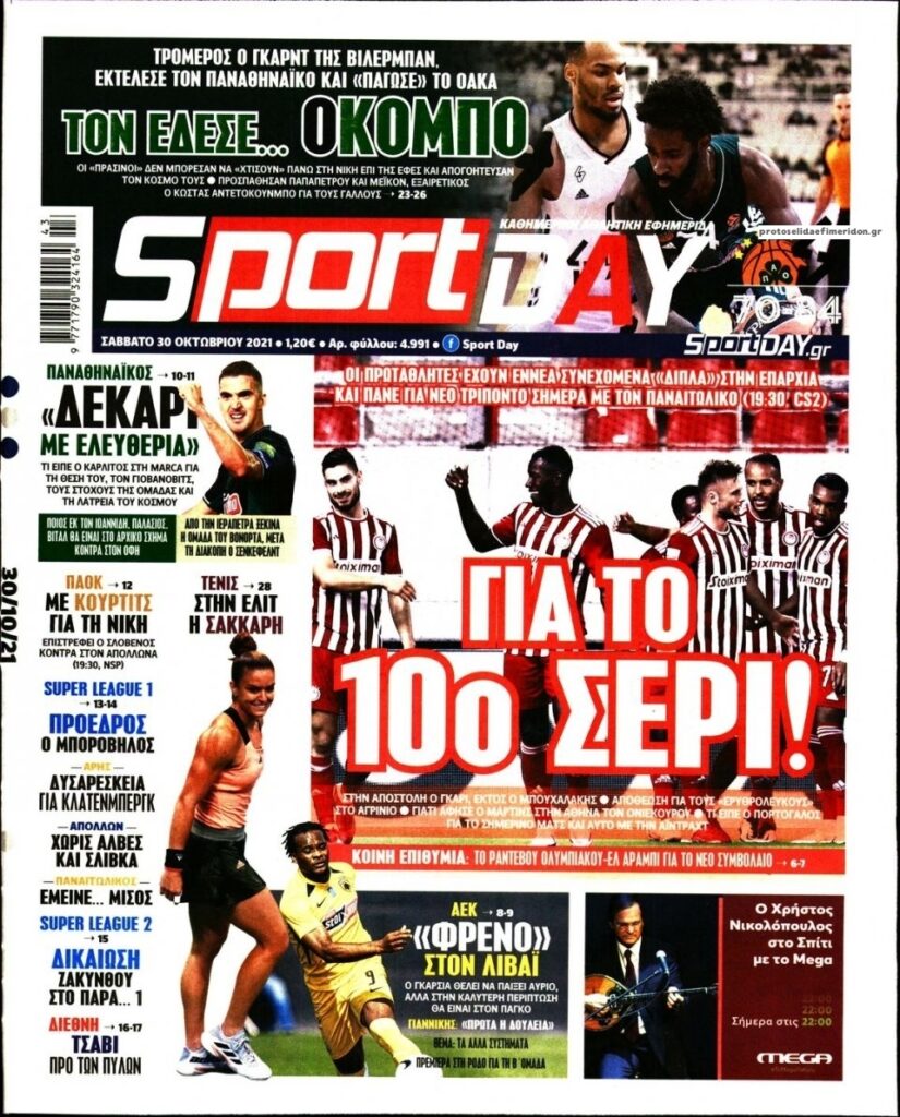 MEDIA Δείτε τις πρώτες σελίδες των αθλητικών εφημερίδων, σήμερα Σάββατο 30 Οκτωβρίου FacebookTwitterPinterestWhatsApp Δείτε τις πρώτες σελίδες των αθλητικών εφημερίδων, σήμερα Σάββατο 30 Οκτωβρίου