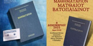Η Ιερά Μεγίστη Μονή Βατοπαιδίου σε συνδιοργάνωση με την Ιερά Μητρόπολη Θεσσαλονίκης θα παρουσιάσουν το Μαθηματάριον του Μοναχού Ματθαίου του Βατοπαιδινού (1774-1849), μουσικού, κωδικογράφου, διδασκάλου της...