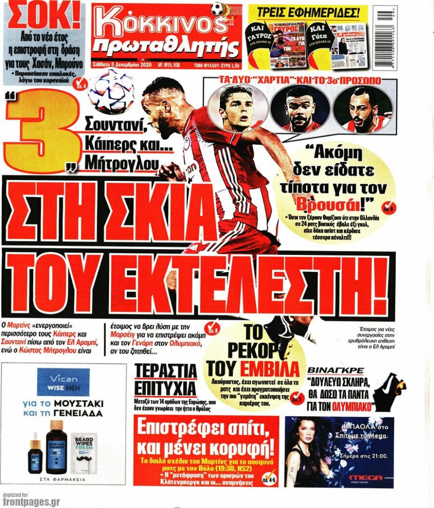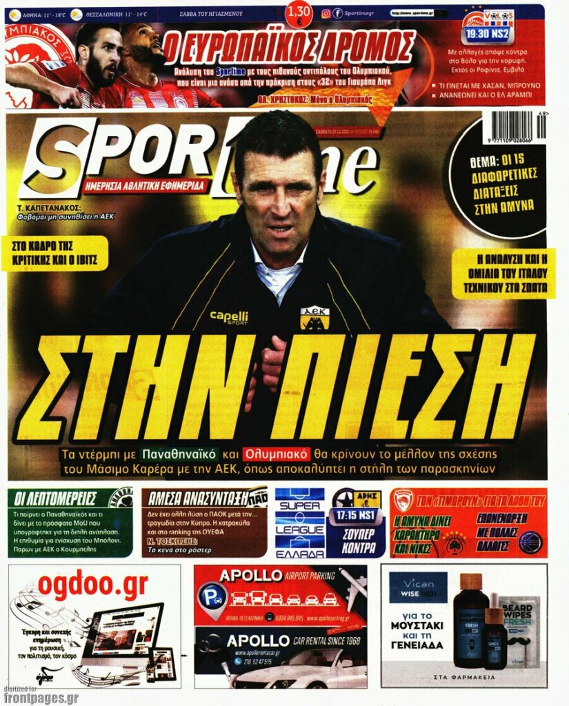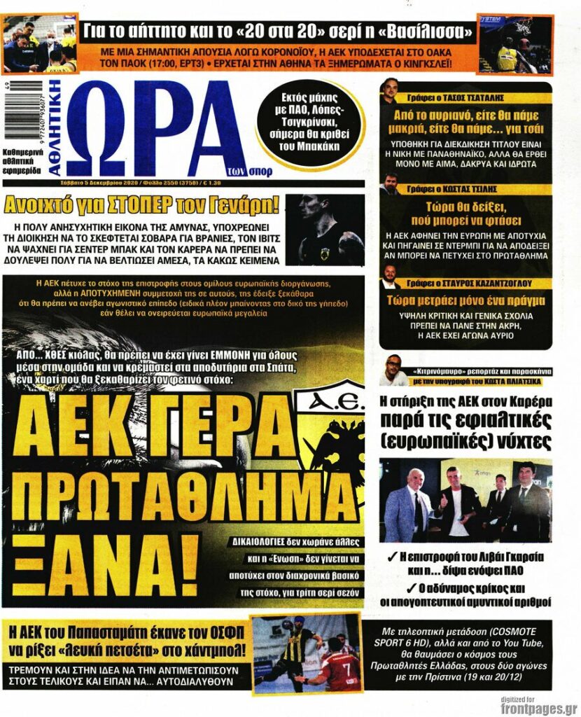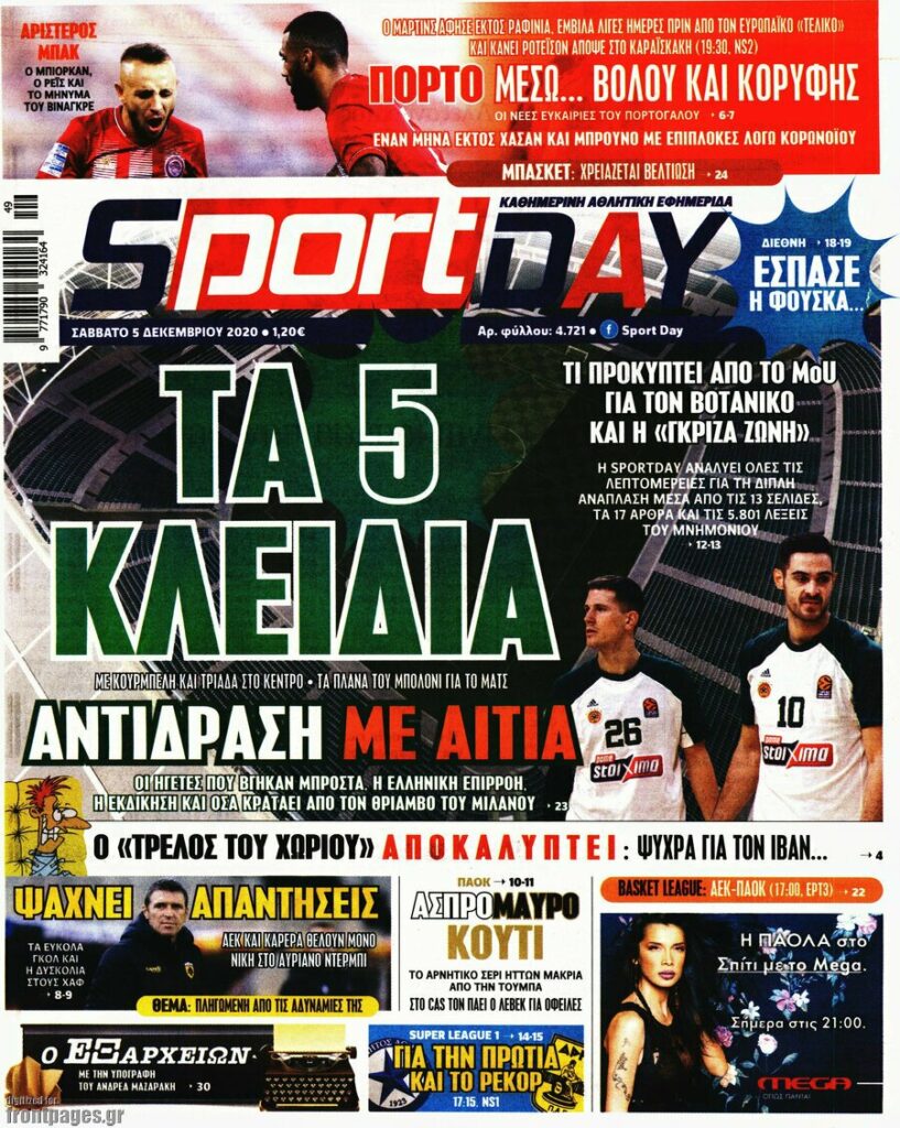 MEDIA Οι πρώτες σελίδες των αθλητικών εφημερίδων, σήμερα Σάββατο 5 Δεκεμβρίου FacebookTwitterPinterestWhatsApp Οι πρώτες σελίδες των αθλητικών εφημερίδων, σήμερα Σάββατο 5 Δεκεμβρίου: