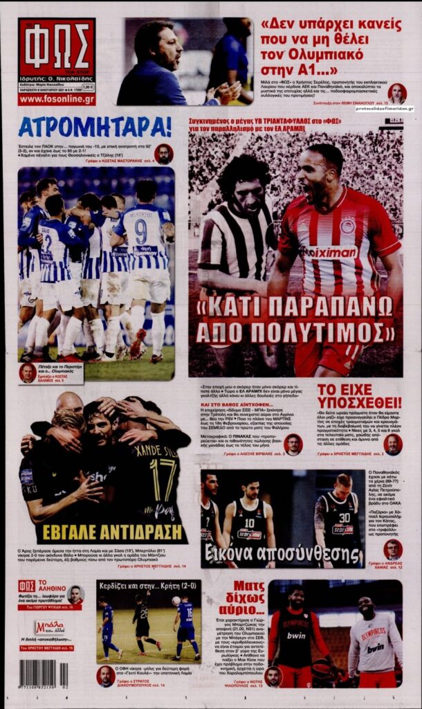 MEDIA Οι πρώτες σελίδες των αθλητικών εφημερίδων, σήμερα Παρασκευή 8 Ιανουαρίου FacebookTwitterPinterestWhatsApp Οι πρώτες σελίδες των αθλητικών εφημερίδων, σήμερα Παρασκευή 8 Ιανουαρίου: