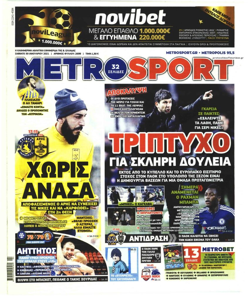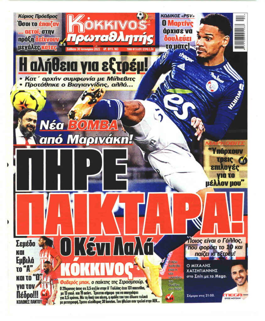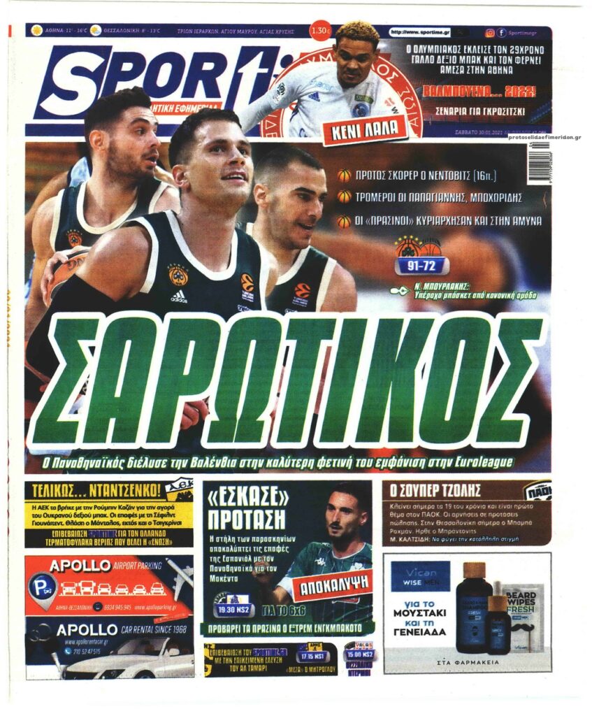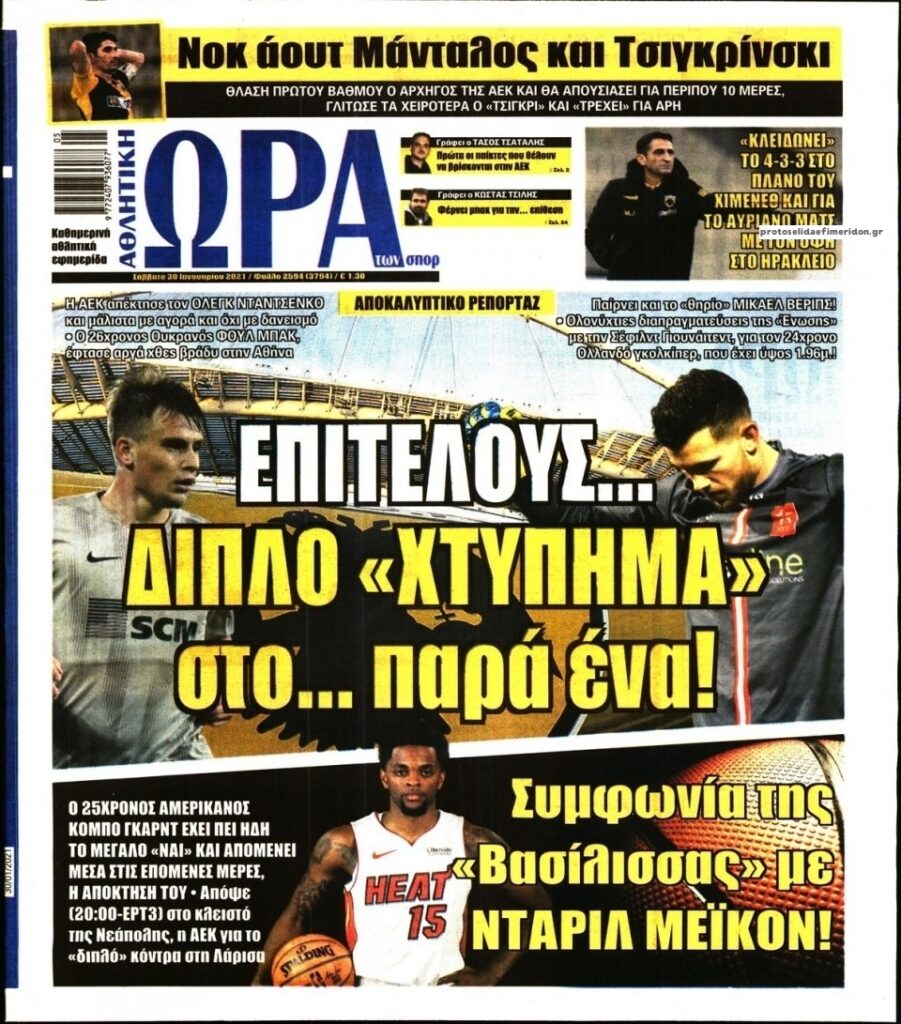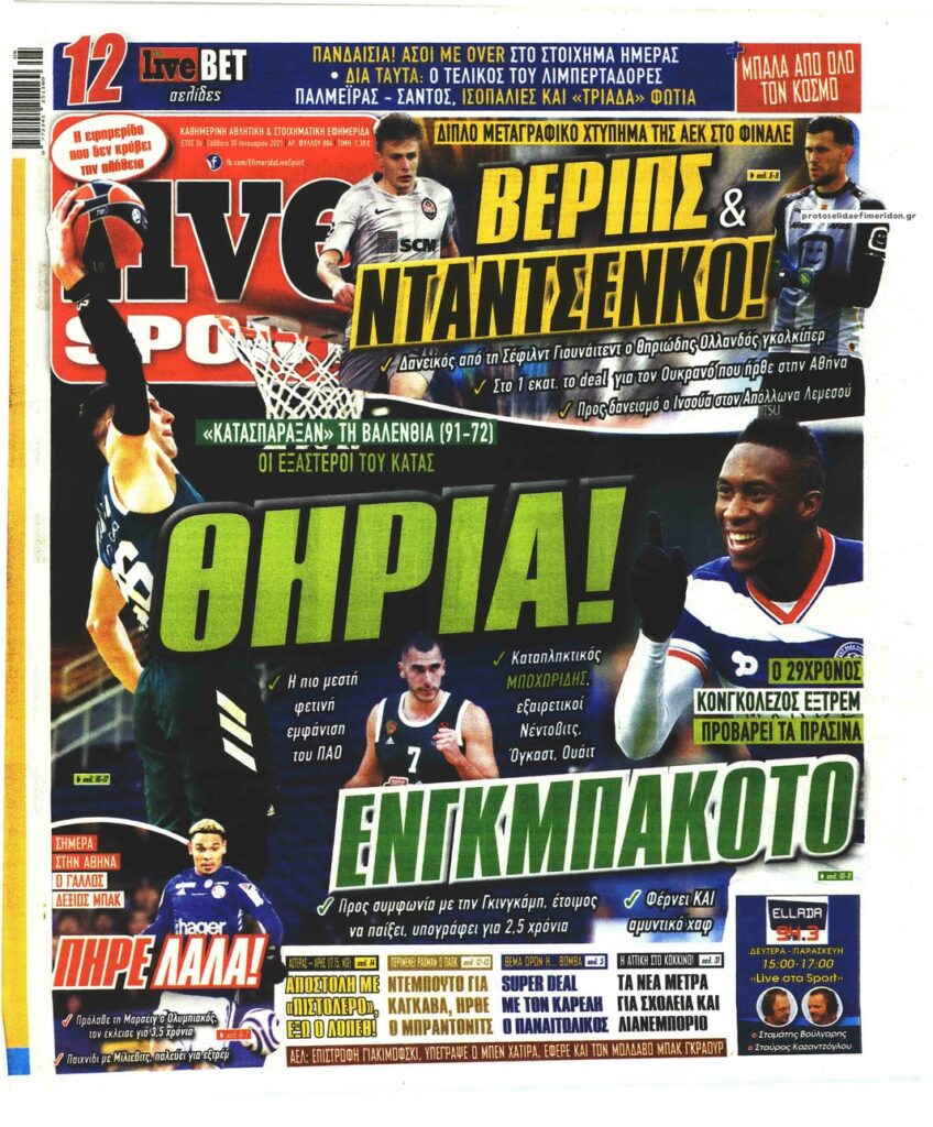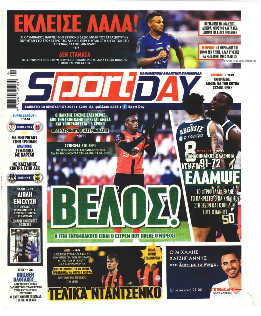 MEDIA Οι πρώτες σελίδες των αθλητικών εφημερίδων, σήμερα Σάββατο, 30 Ιανουαρίου FacebookTwitterPinterestWhatsApp Οι πρώτες σελίδες των αθλητικών εφημερίδων, σήμερα Σάββατο, 30 Ιανουαρίου:
