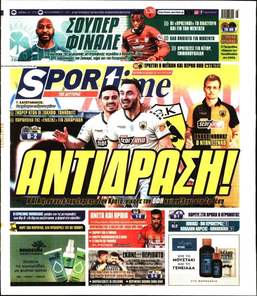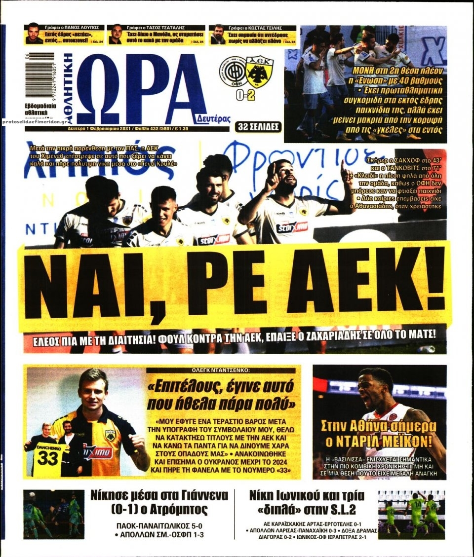 MEDIA Οι πρώτες σελίδες των αθλητικών εφημερίδων, σήμερα Δευτέρα 1η Φεβρουαρίου FacebookTwitterPinterestWhatsApp Οι πρώτες σελίδες των αθλητικών εφημερίδων, σήμερα Δευτέρα 1η Φεβρουαρίου:
