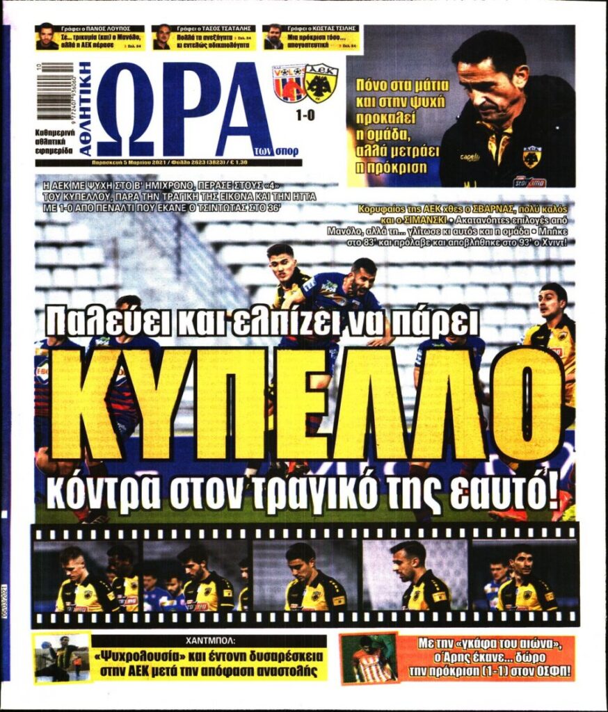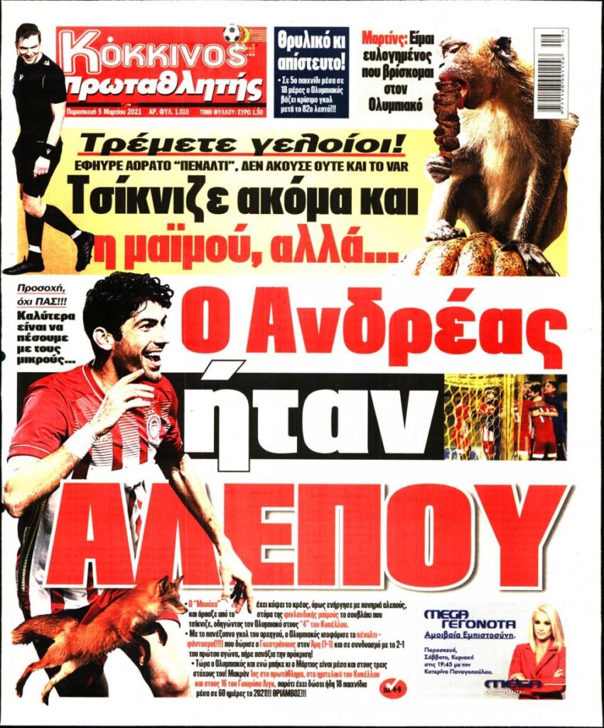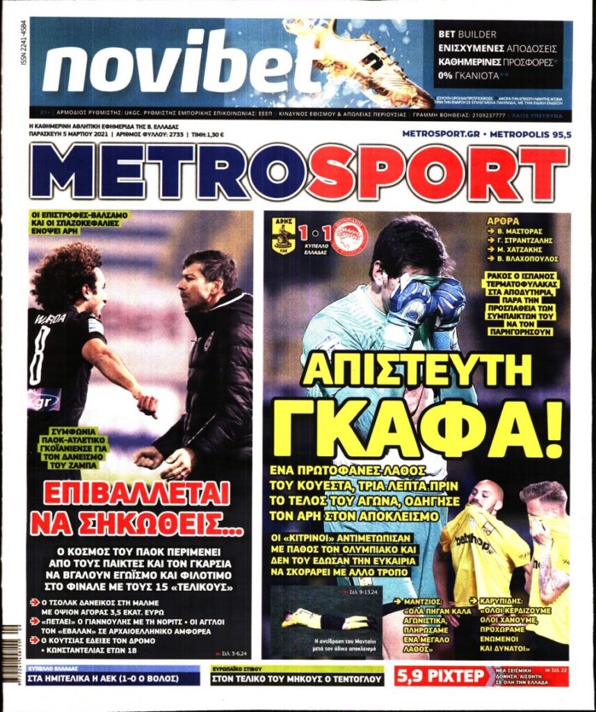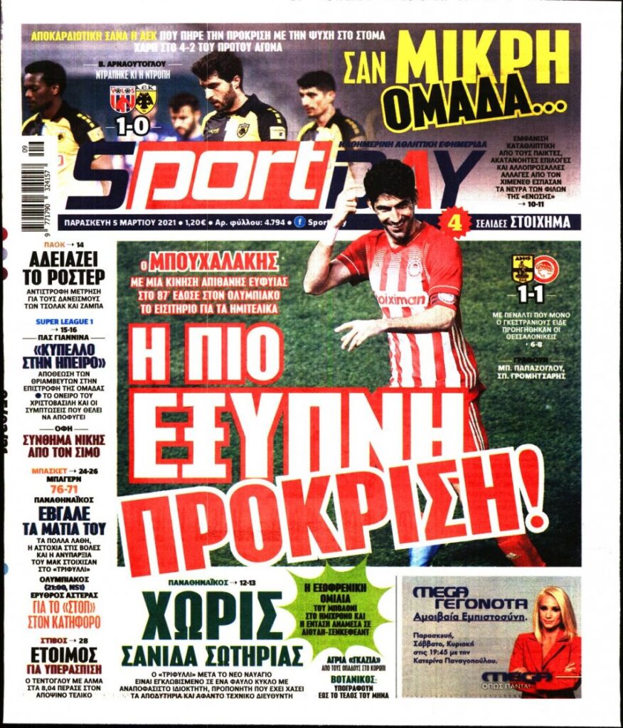 MEDIA Οι πρώτες σελίδες των αθλητικών εφημερίδων, σήμερα Παρασκευή, 5 Μαρτίου FacebookTwitterPinterestWhatsApp Οι πρώτες σελίδες των αθλητικών εφημερίδων, σήμερα Παρασκευή, 5 Μαρτίου: