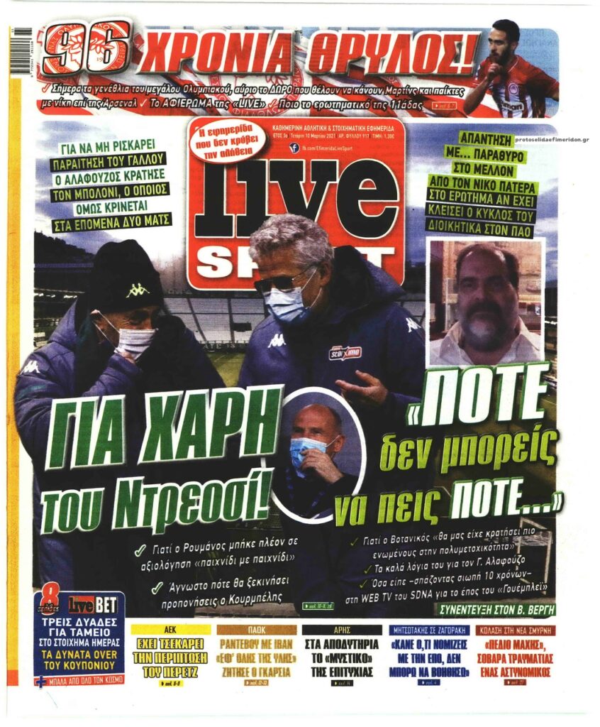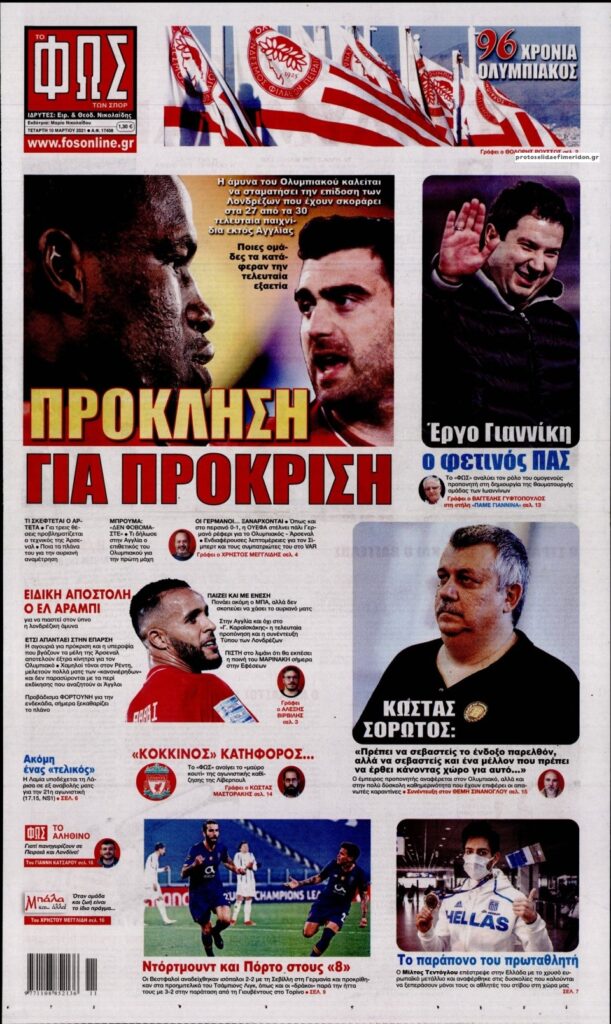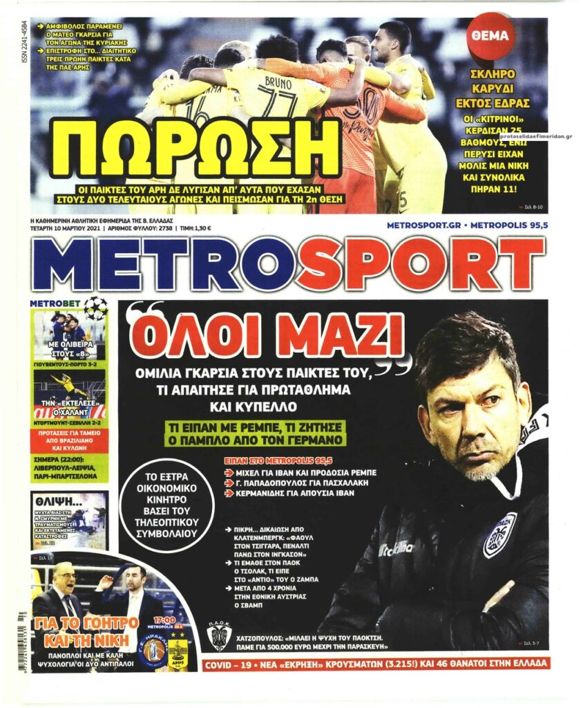 MEDIA Οι πρώτες σελίδες των αθλητικών εφημερίδων, σήμερα Τετάρτη, 10 Μαρτίου FacebookTwitterPinterestWhatsApp Οι πρώτες σελίδες των αθλητικών εφημερίδων, σήμερα Τετάρτη, 10 Μαρτίου: