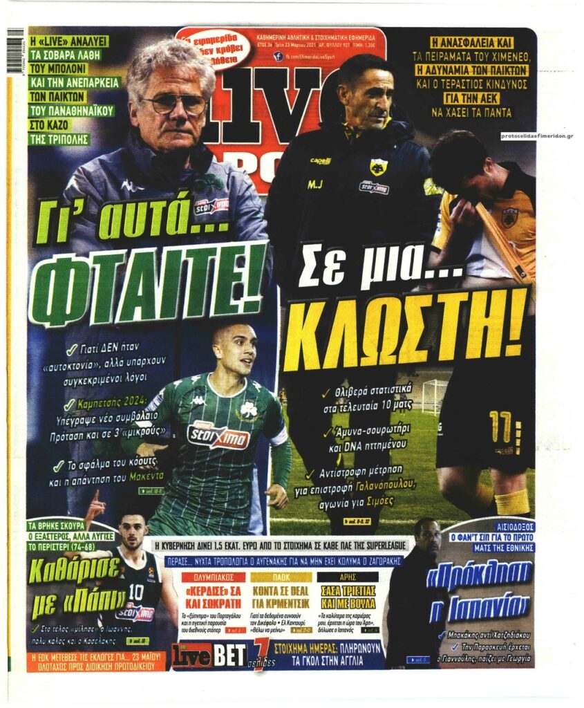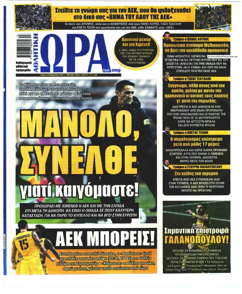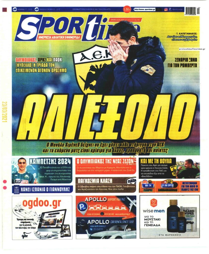 MEDIA Οι πρώτες σελίδες των αθλητικών εφημερίδων, σήμερα Τρίτη, 23 Μαρτίου FacebookTwitterPinterestWhatsApp Οι πρώτες σελίδες των αθλητικών εφημερίδων, σήμερα Τρίτη, 23 Μαρτίου: