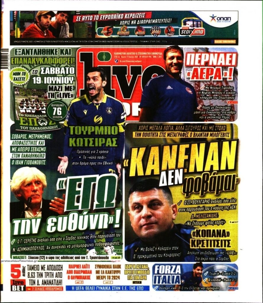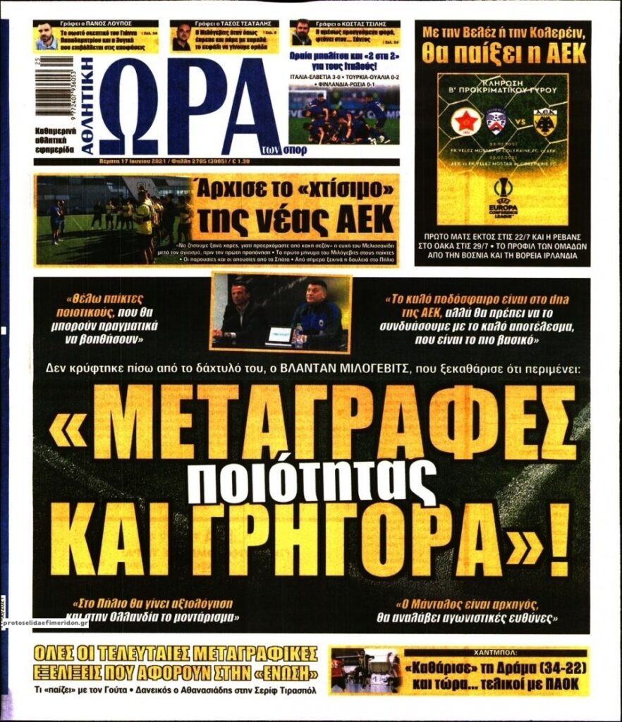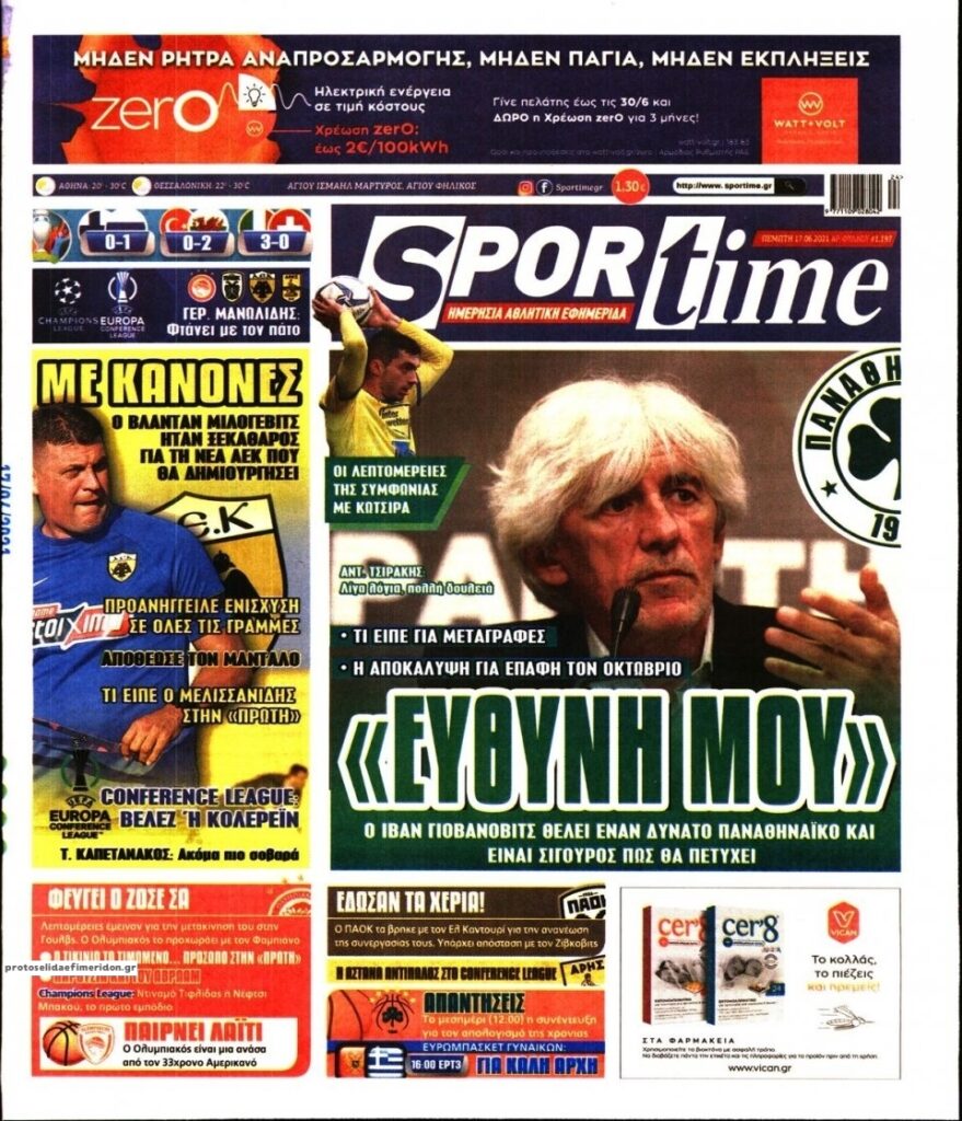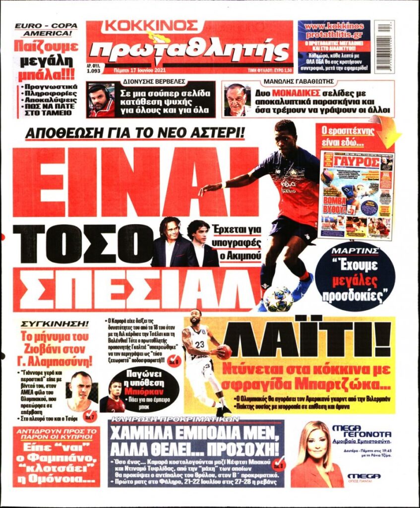MEDIA Οι πρώτες σελίδες των αθλητικών εφημερίδων, σήμερα Πέμπτη 17 Ιουνίου FacebookTwitterPinterestWhatsApp Οι πρώτες σελίδες των αθλητικών εφημερίδων, σήμερα Πέμπτη 17 Ιουνίου: