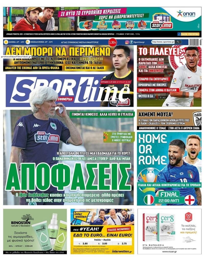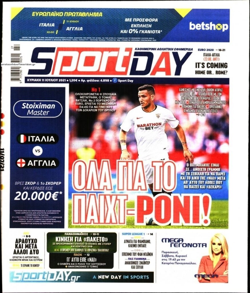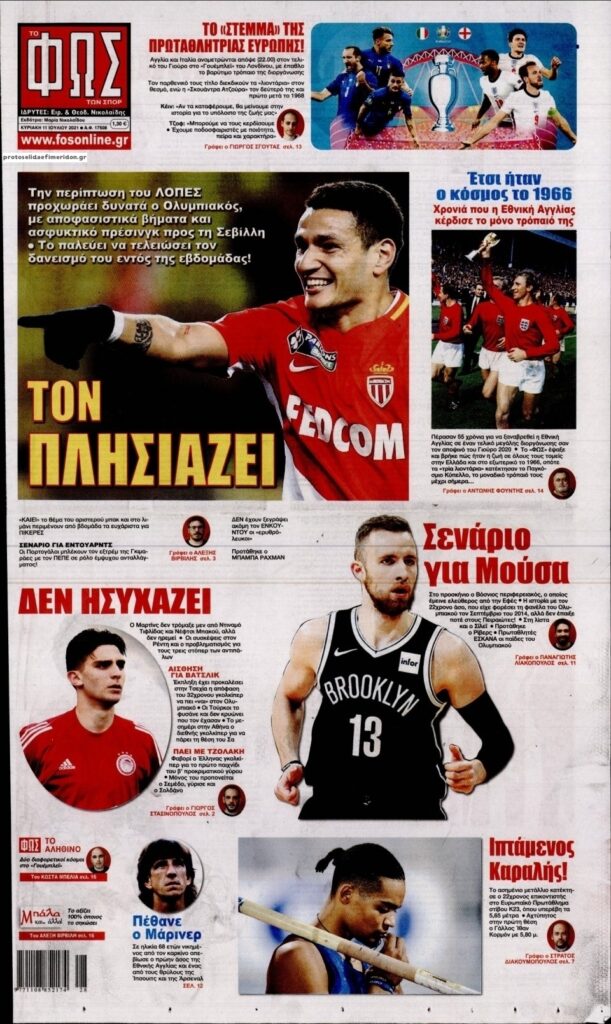MEDIA Οι πρώτες σελίδες των αθλητικών εφημερίδων, σήμερα Κυριακή 11 Ιουλίου FacebookTwitterPinterestWhatsApp Οι αθλητικές εφημερίδες, σήμερα Κυριακή 11 Ιουλίου: