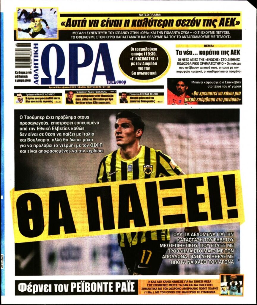 MEDIA Οι πρώτες σελίδες των αθλητικών εφημερίδων, σήμερα τρίτη 9 Νοεμβρίου FacebookTwitterPinterestWhatsApp Οι πρώτες σελίδες των αθλητικών εφημερίδων, σήμερα τρίτη 9 Νοεμβρίου