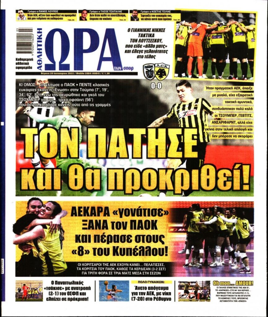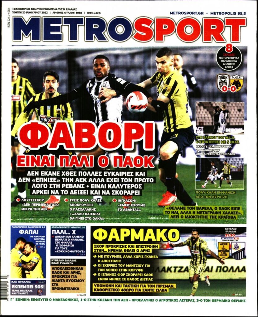 MEDIA Οι πρώτες σελίδες των αθλητικών εφημερίδων, σήμερα Πέμπτη 20 Ιανουαρίου FacebookTwitterPinterestWhatsApp Οι πρώτες σελίδες των αθλητικών εφημερίδων, σήμερα Πέμπτη 20 Ιανουαρίου