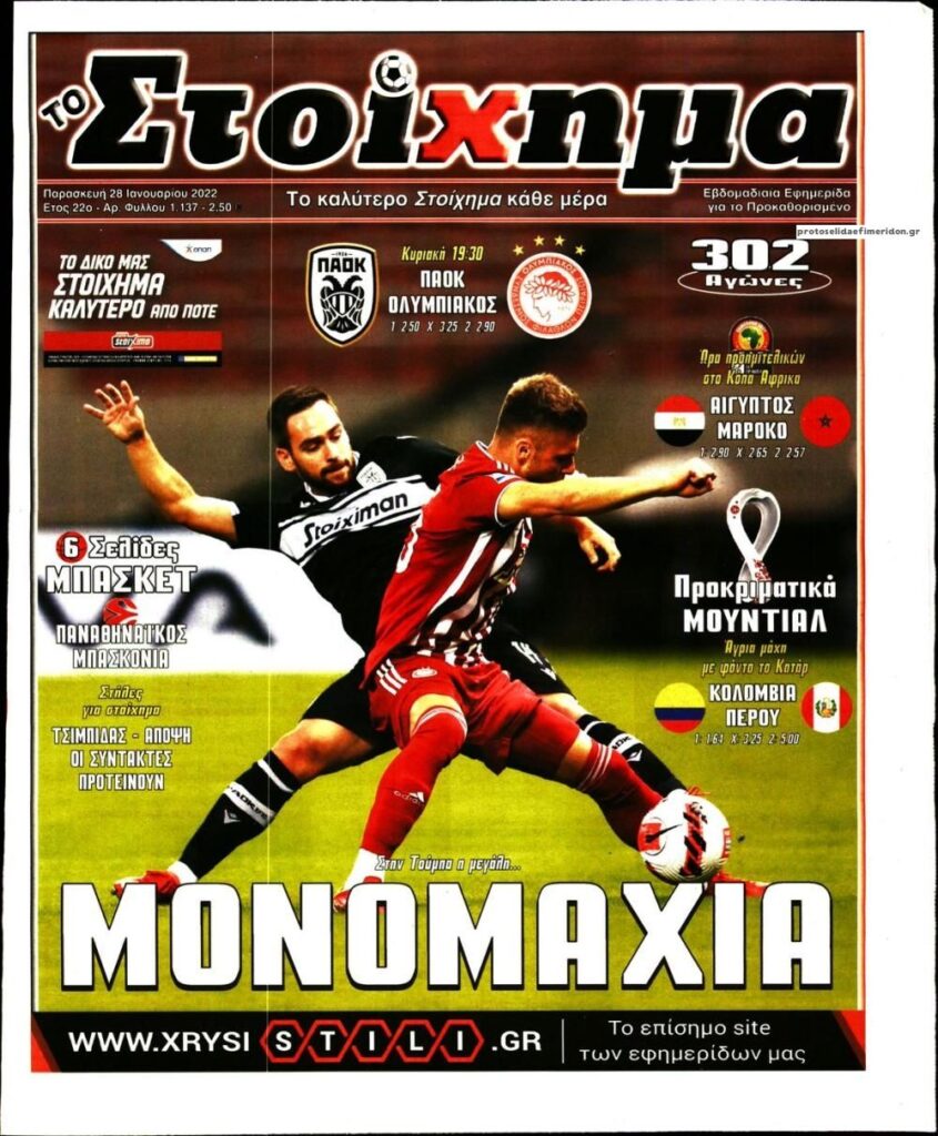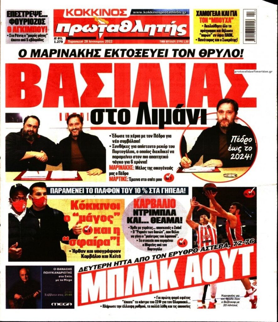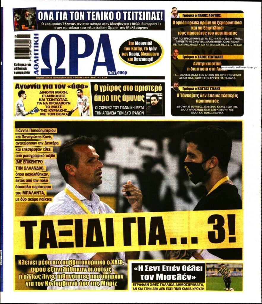 MEDIA Οι πρώτες σελίδες των αθλητικών εφημερίδων, σήμερα Παρασκευή 28 Ιανουαρίου FacebookTwitterPinterestWhatsApp Οι πρώτες σελίδες των αθλητικών εφημερίδων, σήμερα Παρασκευή 28 Ιανουαρίου