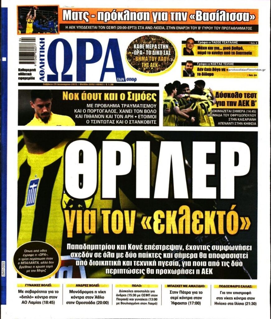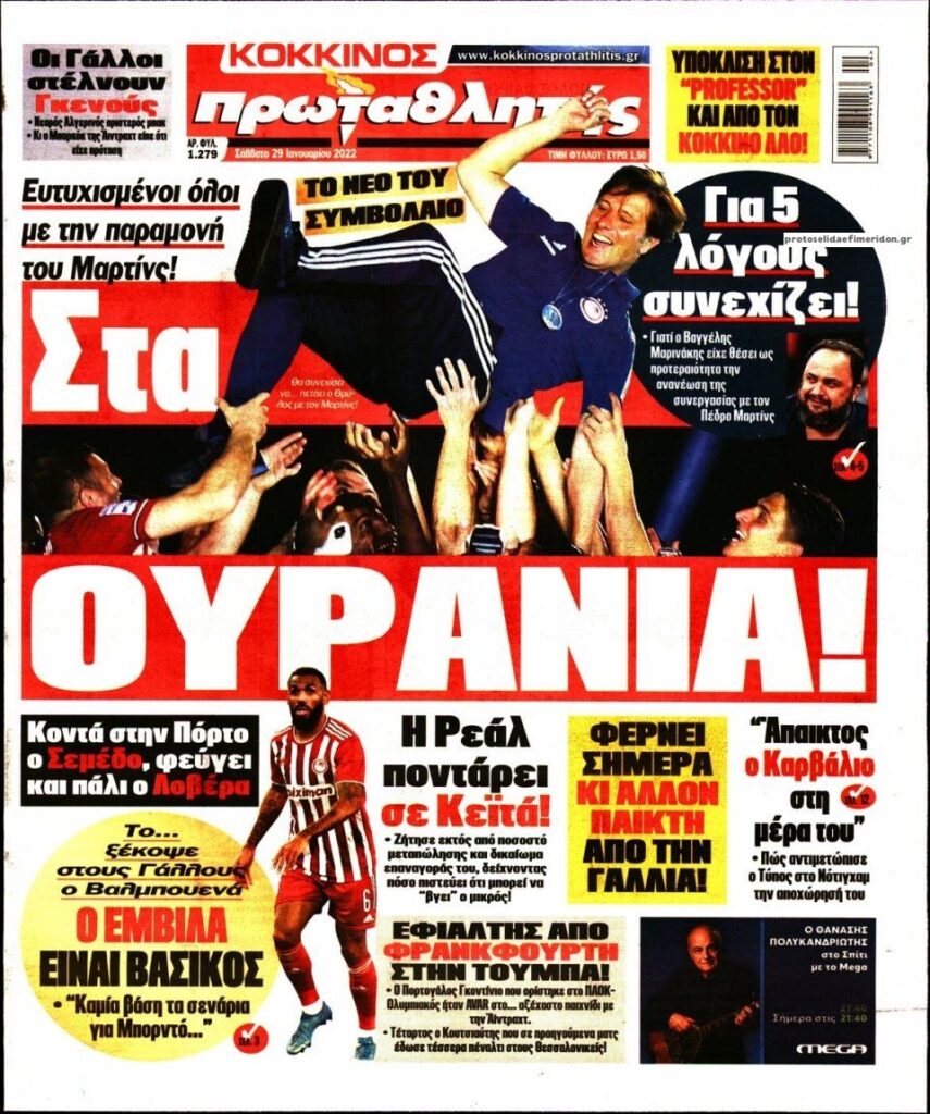 MEDIA Οι πρώτες σελίδες των αθλητικών εφημερίδων, σήμερα Σάββατο 29 Ιανουαρίου FacebookTwitterPinterestWhatsApp Οι πρώτες σελίδες των αθλητικών εφημερίδων, σήμερα Σάββατο 29 Ιανουαρίου
