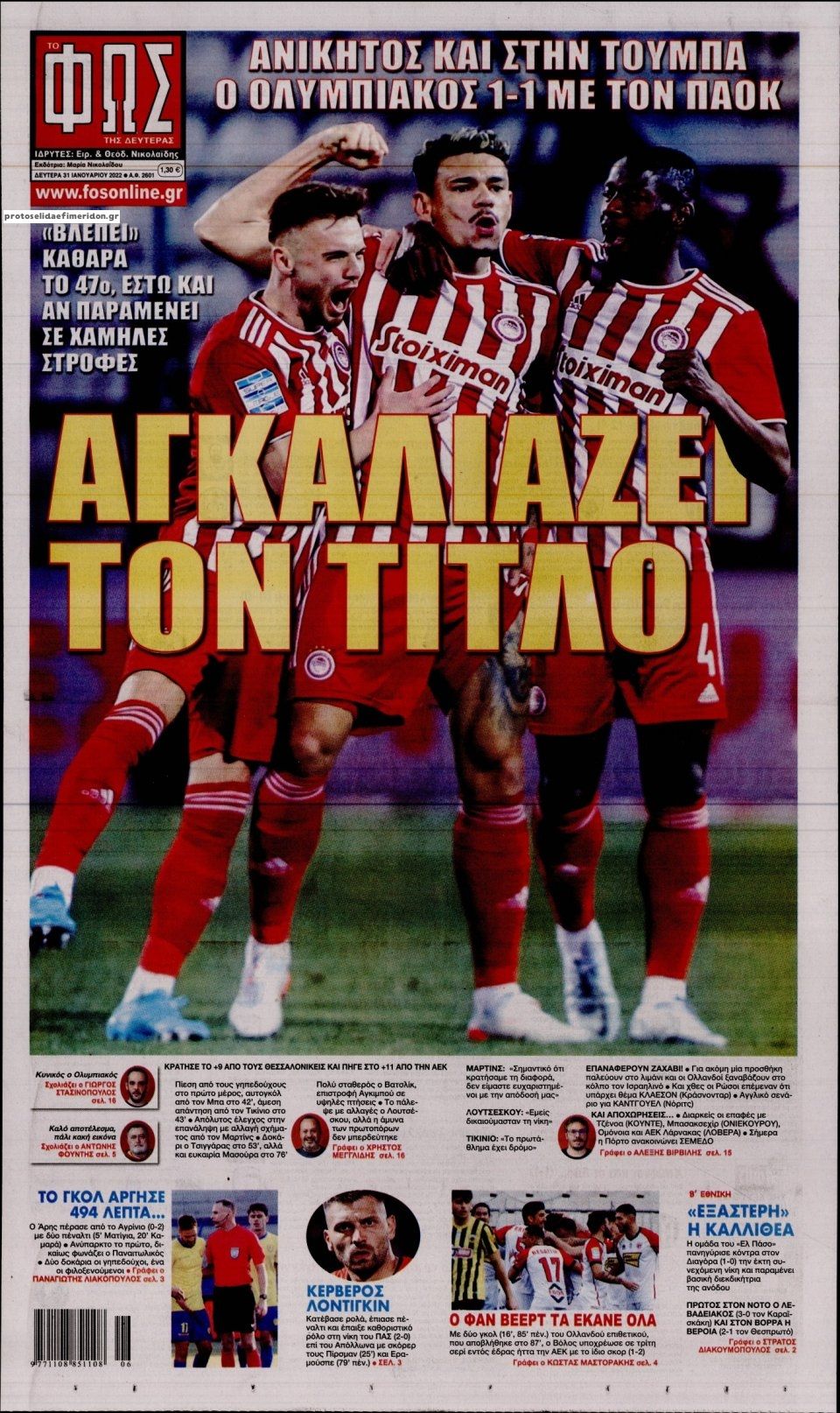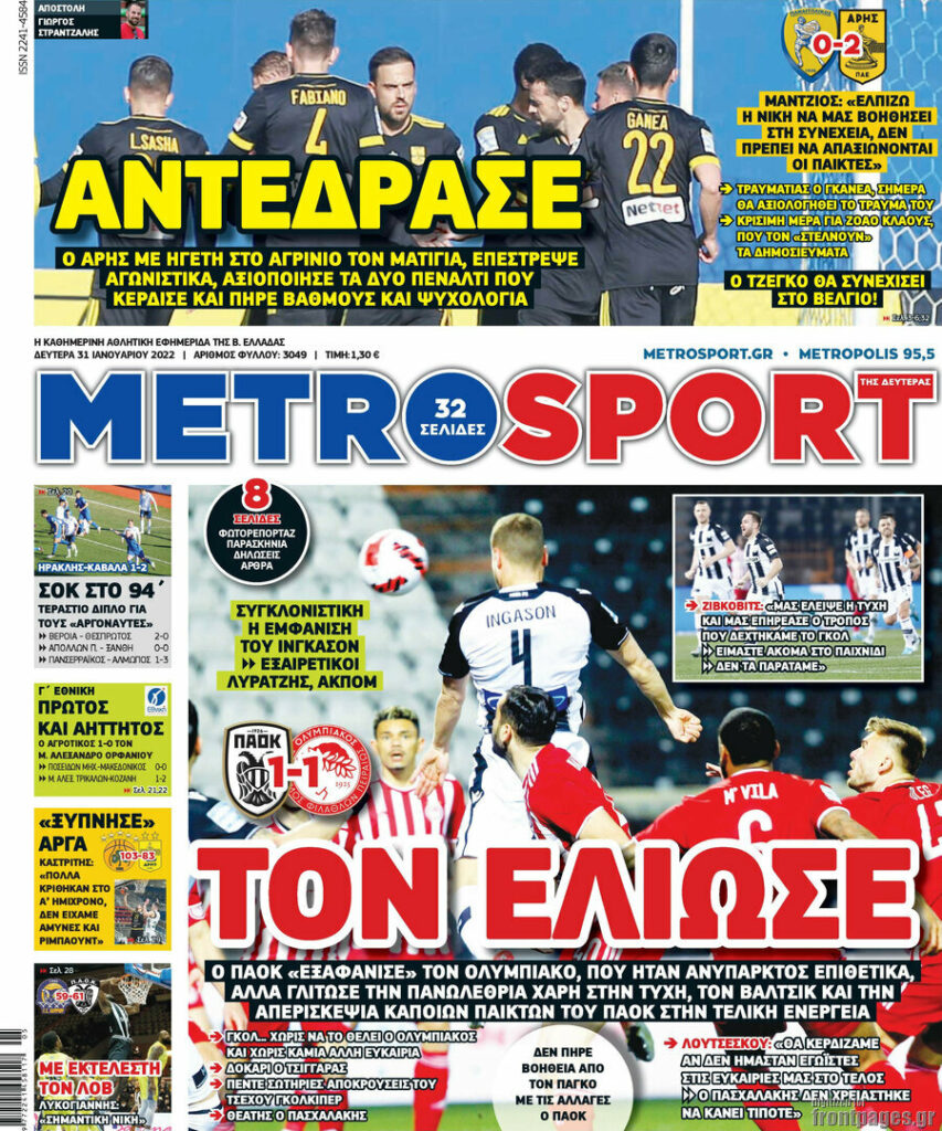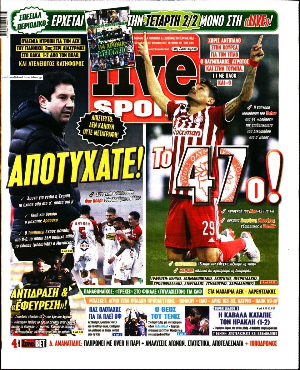 MEDIA Οι πρώτες σελίδες των αθλητικών εφημερίδων, σήμερα Δευτέρα 31 Ιανουαρίου FacebookTwitterPinterestWhatsApp Οι πρώτες σελίδες των αθλητικών εφημερίδων, σήμερα Δευτέρα 31 Ιανουαρίου Οι πρώτες σελίδες των αθλητικών εφημερίδων, σήμερα Δευτέρα 31 Ιανουαρίου