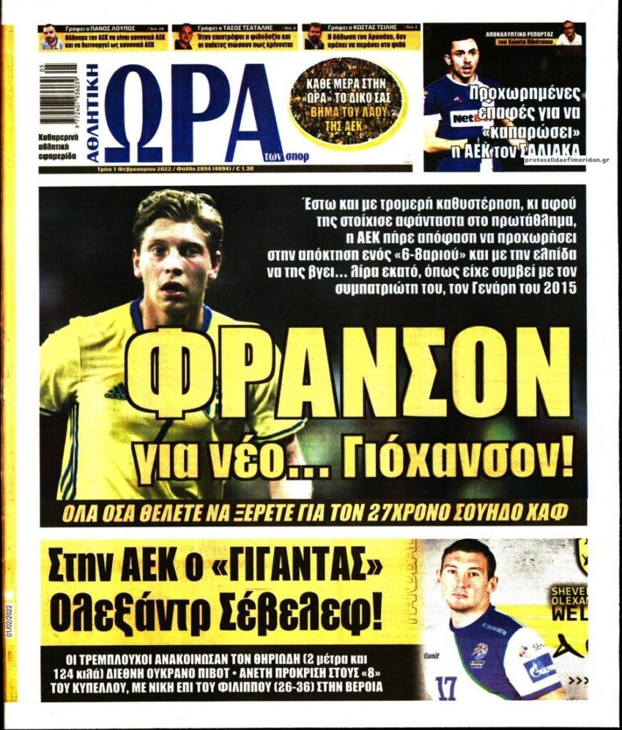 MEDIA Οι πρώτες σελίδες των αθλητικών εφημερίδων, σήμερα Τρίτη 1η Φεβρουαρίου FacebookTwitterPinterestWhatsApp Οι πρώτες σελίδες των αθλητικών εφημερίδων, σήμερα Τρίτη 1η Φεβρουαρίου