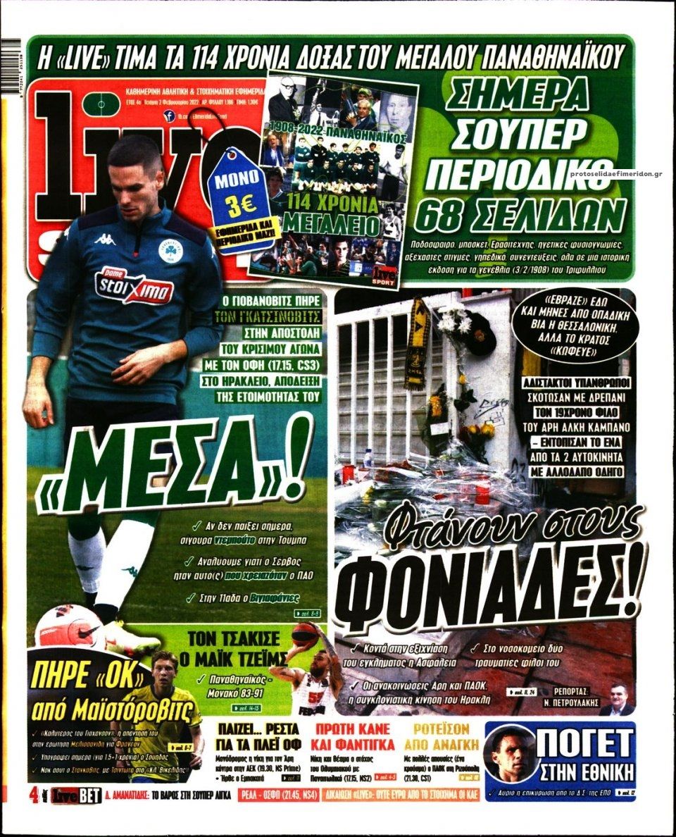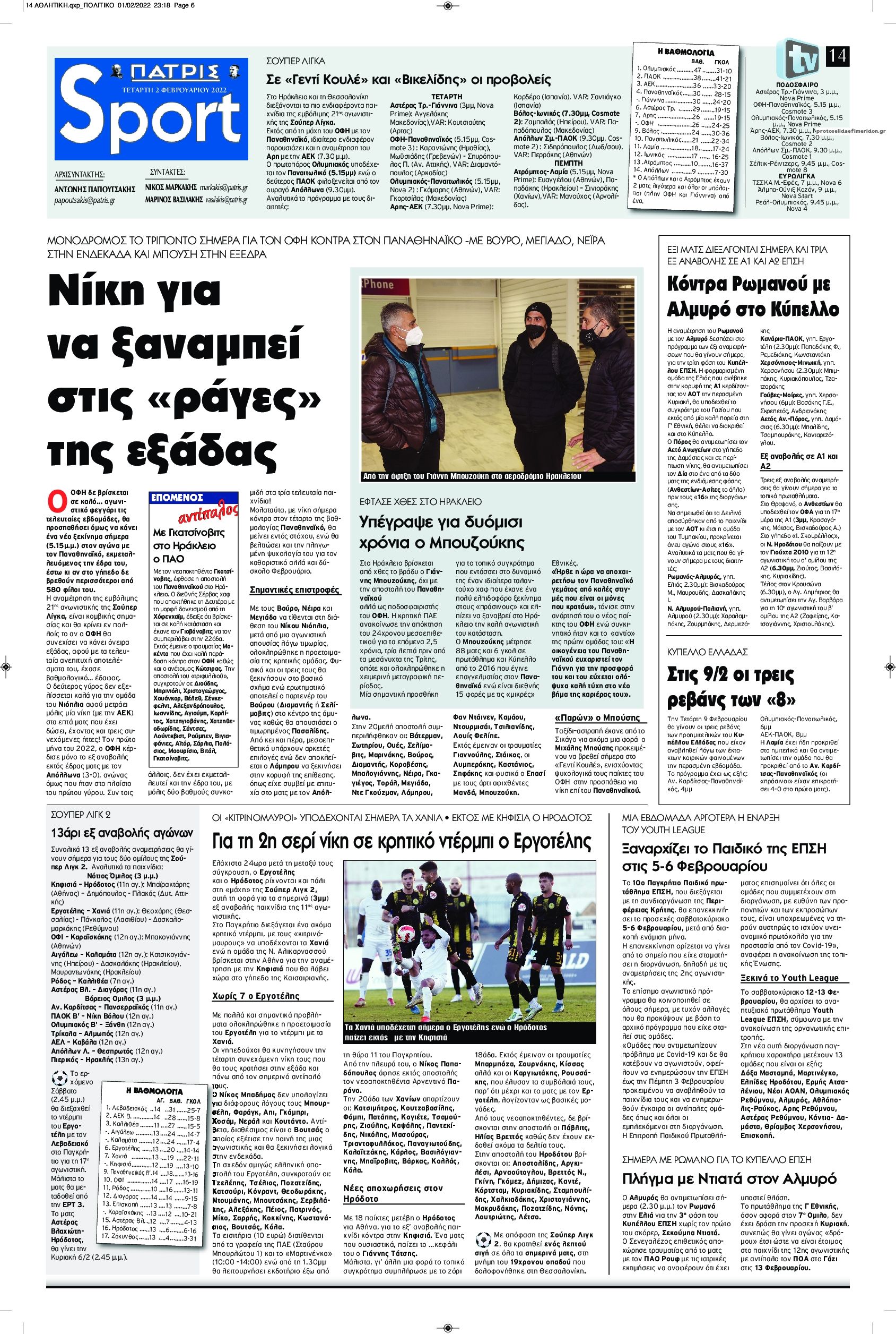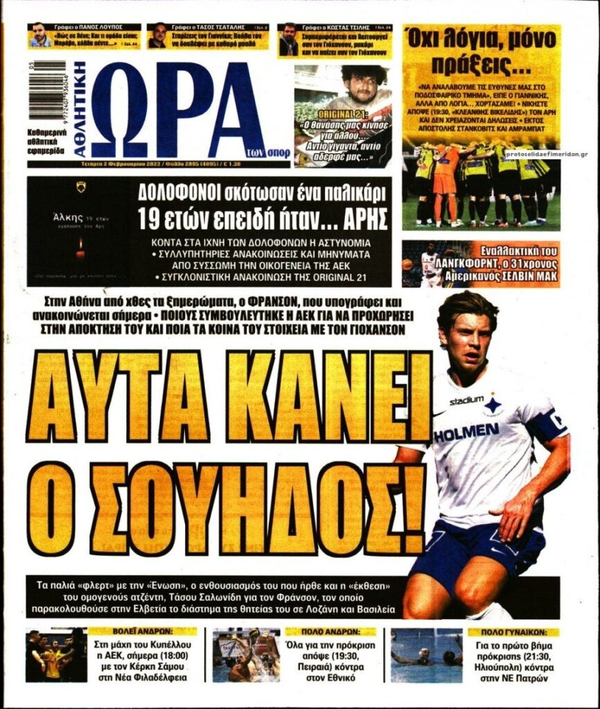 MEDIA Οι πρώτες σελίδες των αθλητικών εφημερίδων, σήμερα Τετάρτη 2 Φεβρουαρίου FacebookTwitterPinterestWhatsApp Οι πρώτες σελίδες των αθλητικών εφημερίδων, σήμερα Τετάρτη 2 Φεβρουαρίου