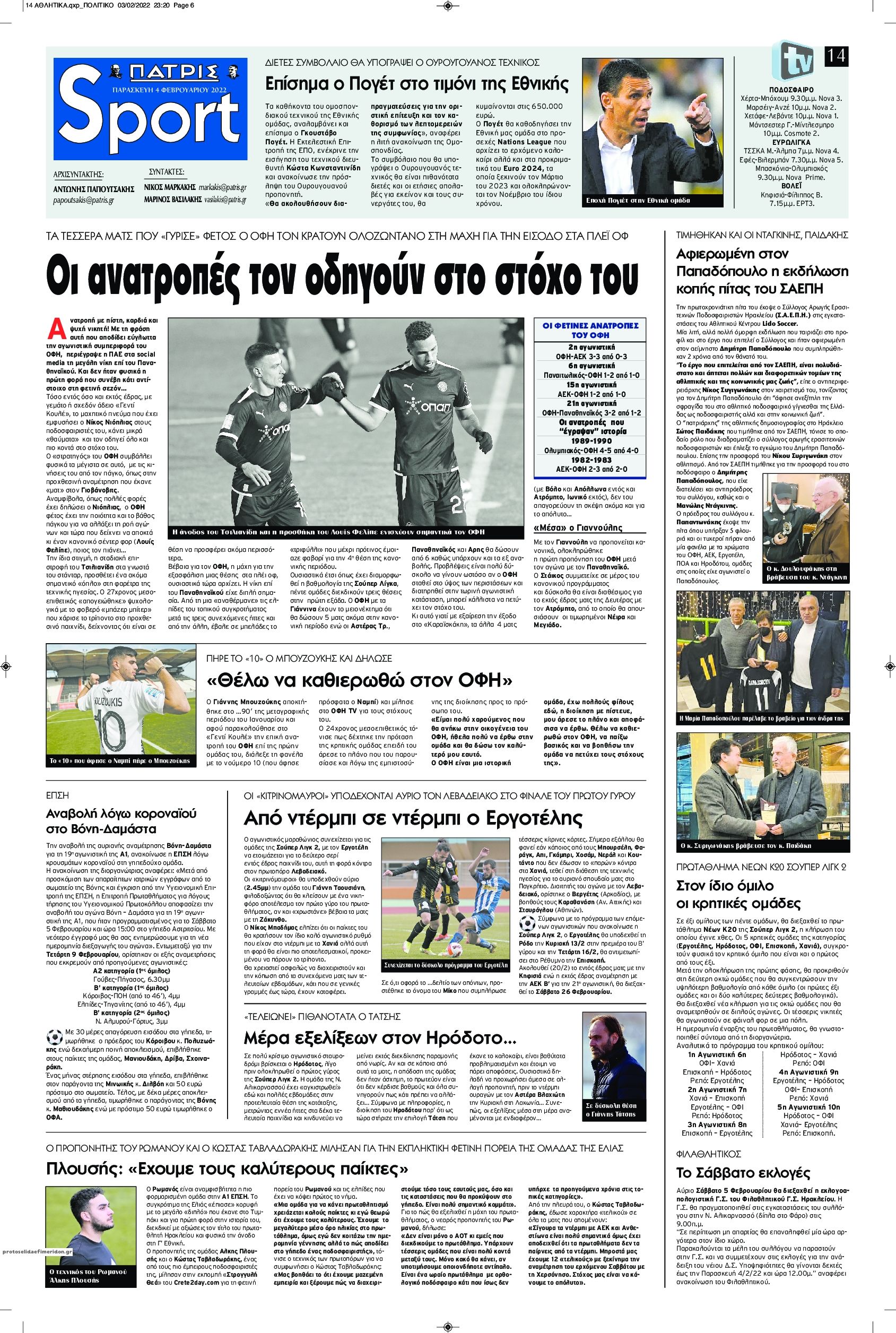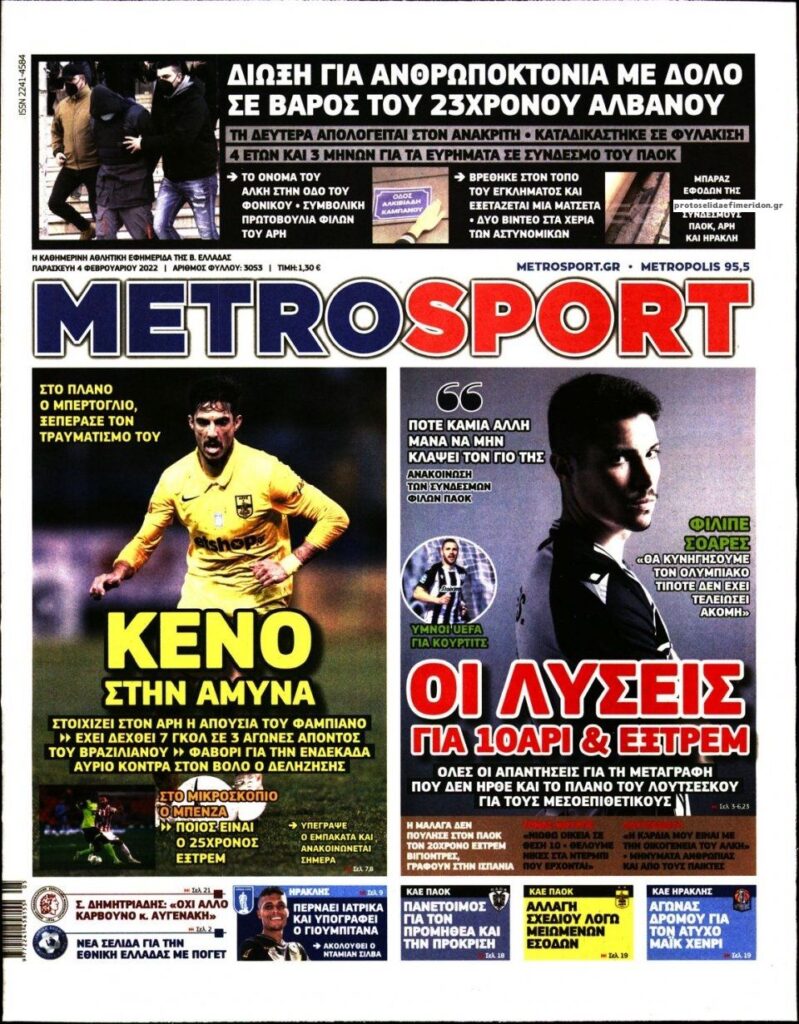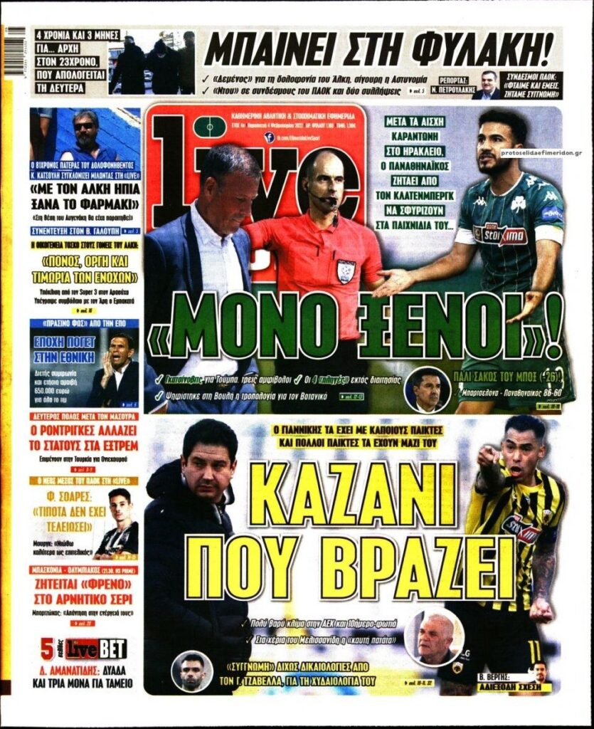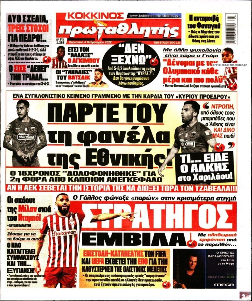 MEDIA Οι πρώτες σελίδες των αθλητικών εφημερίδων, σήμερα Παρασκευή 4 Φεβρουαρίου FacebookTwitterPinterestWhatsApp Οι πρώτες σελίδες των αθλητικών εφημερίδων, σήμερα Παρασκευή 4 Φεβρουαρίου