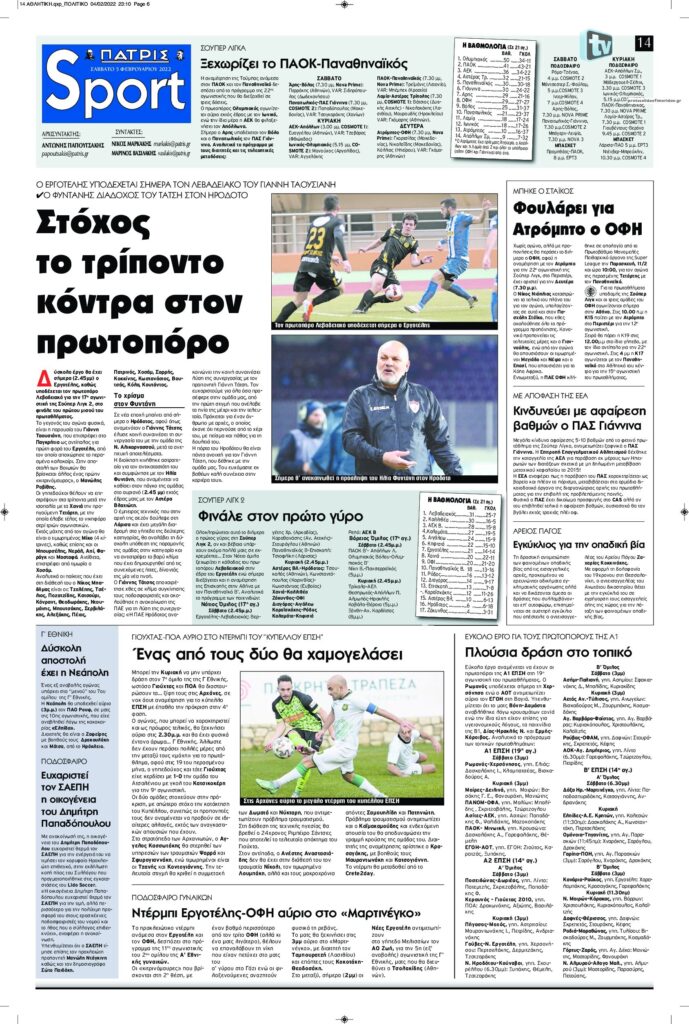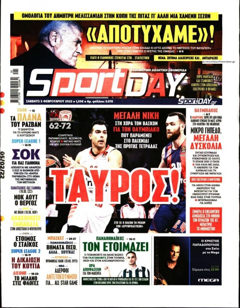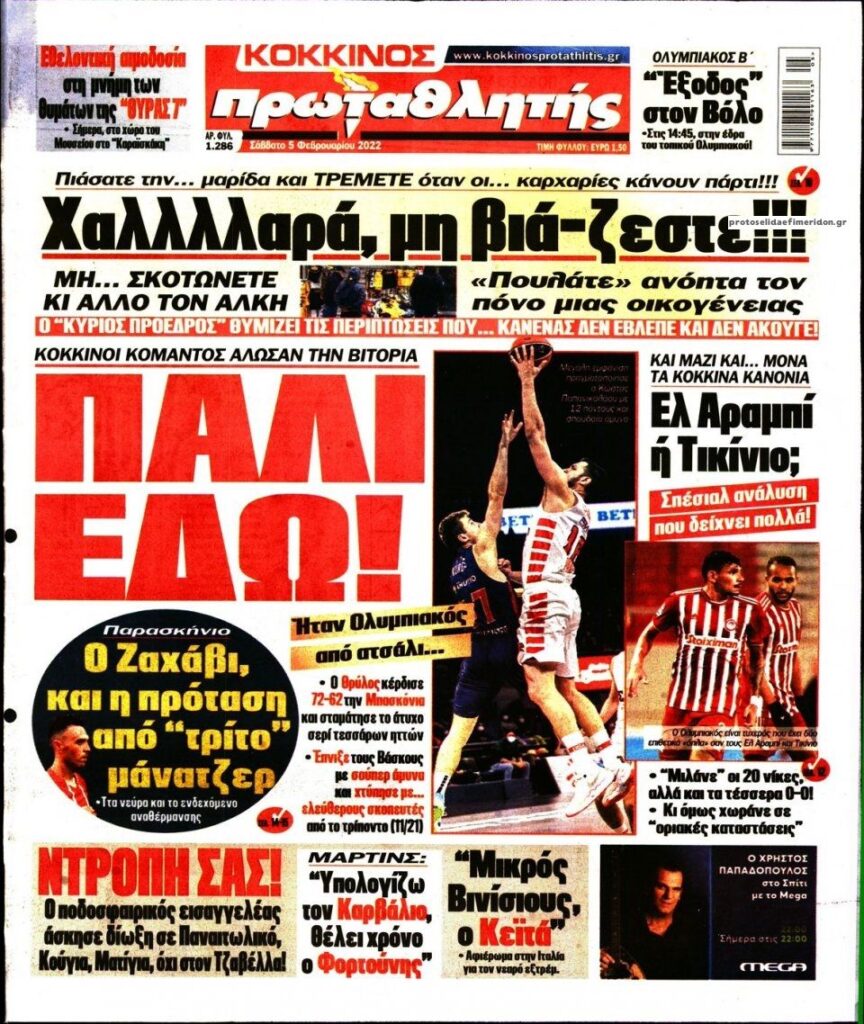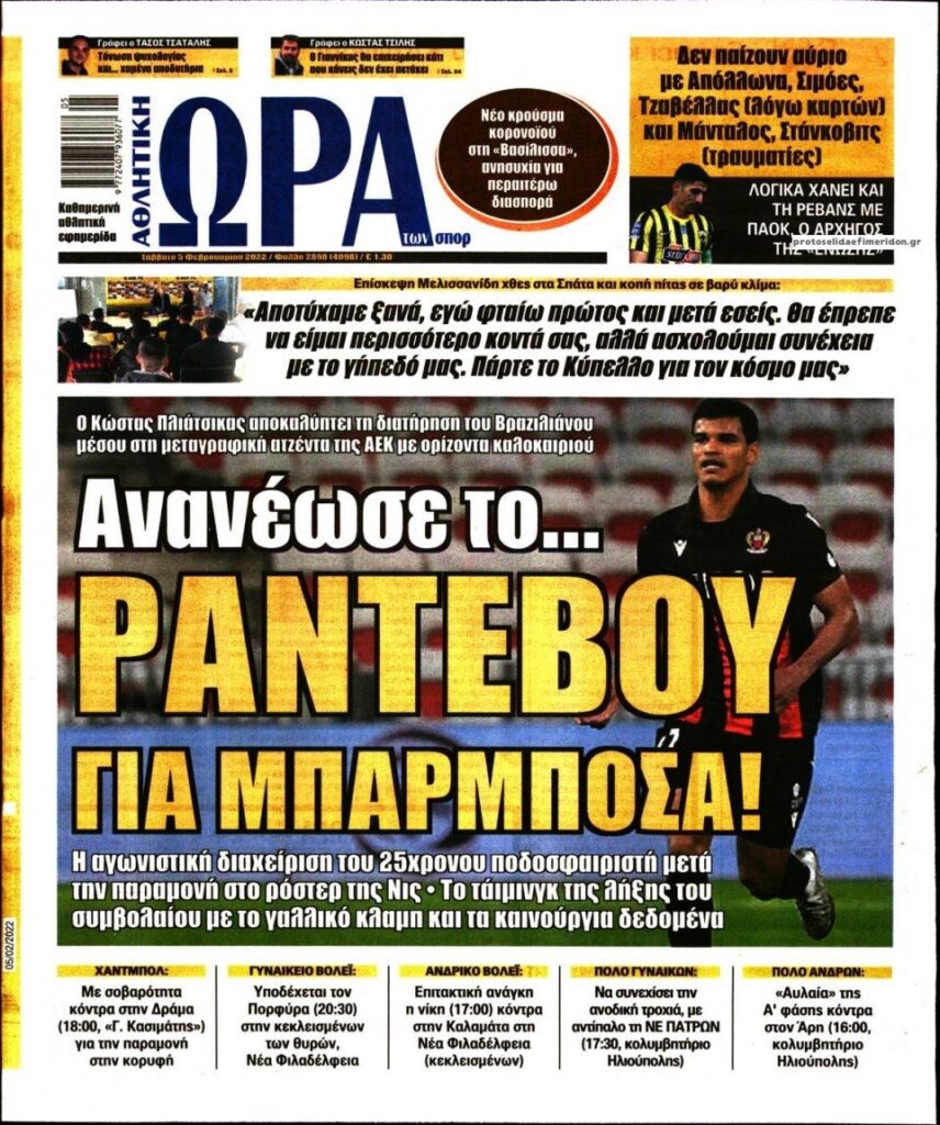 MEDIA Οι πρώτες σελίδες των αθλητικών εφημερίδων, σήμερα Σάββατο 5 Φεβρουαρίου FacebookTwitterPinterestWhatsApp Οι πρώτες σελίδες των αθλητικών εφημερίδων, σήμερα Σάββατο 5 Φεβρουαρίου