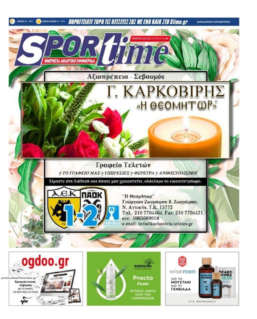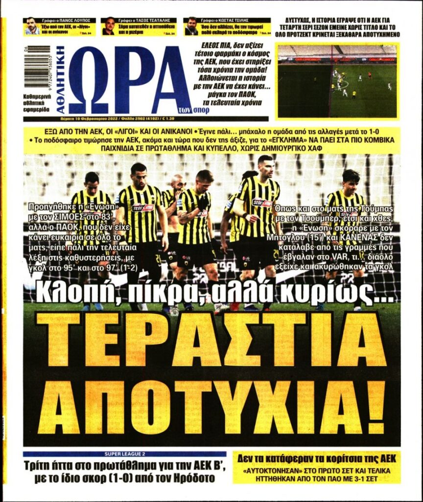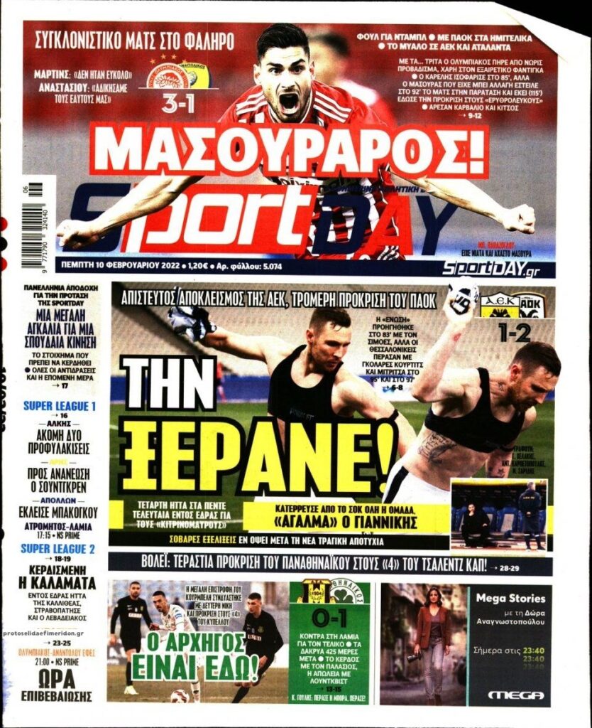 MEDIA Οι πρώτες σελίδες των αθλητικών εφημερίδων, σήμερα Πέμπτη 10 Φεβρουαρίου FacebookTwitterPinterestWhatsApp Οι πρώτες σελίδες των αθλητικών εφημερίδων, σήμερα Πέμπτη 10 Φεβρουαρίου