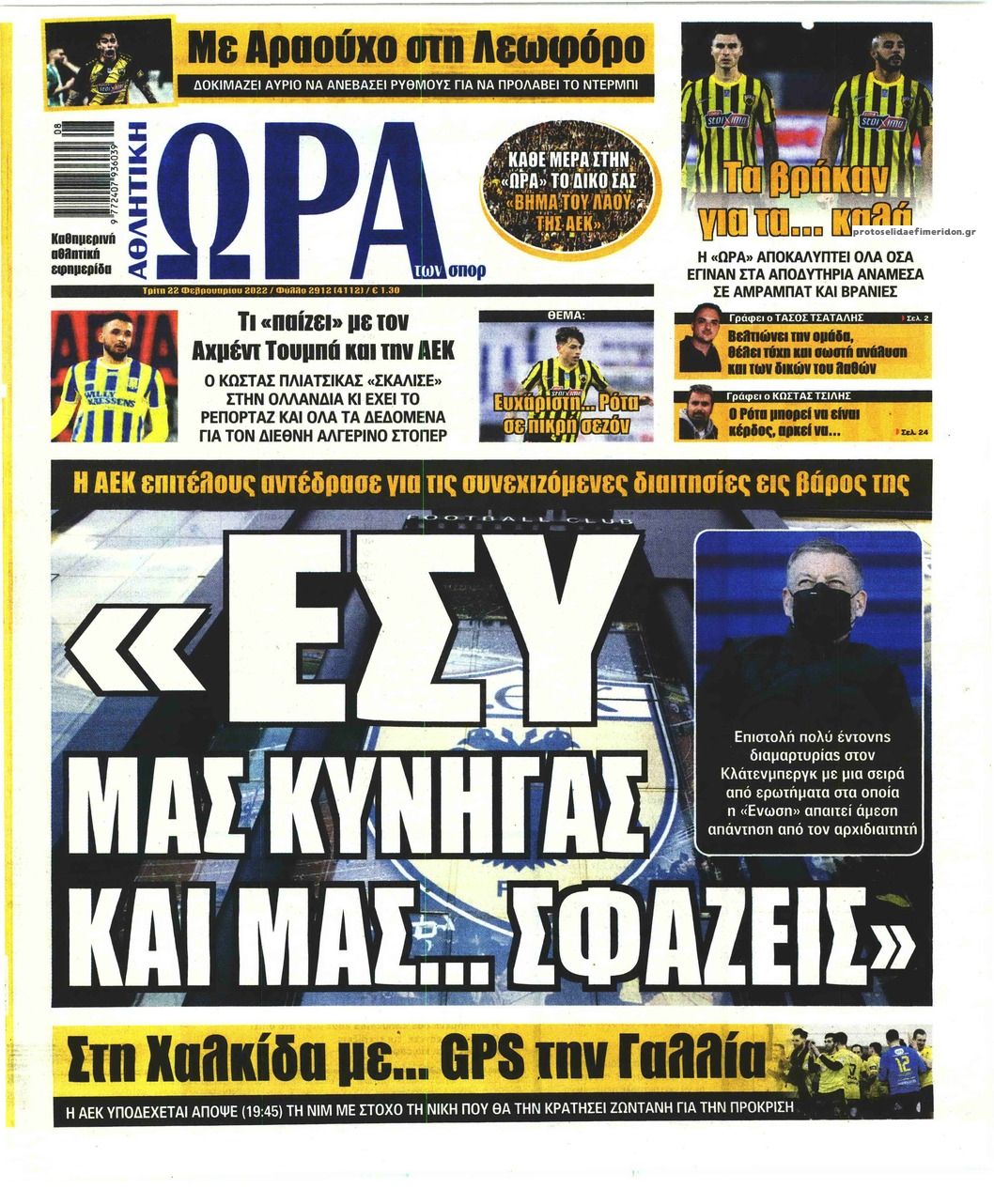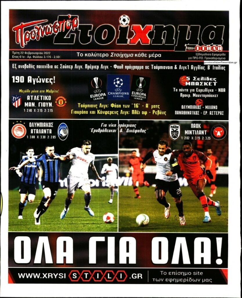 MEDIA Οι πρώτες σελίδες των αθλητικών εφημερίδων, σήμερα Τρίτη 22 Φεβρουαρίου FacebookTwitterPinterestWhatsApp Οι πρώτες σελίδες των αθλητικών εφημερίδων, σήμερα Τρίτη 22 Φεβρουαρίου