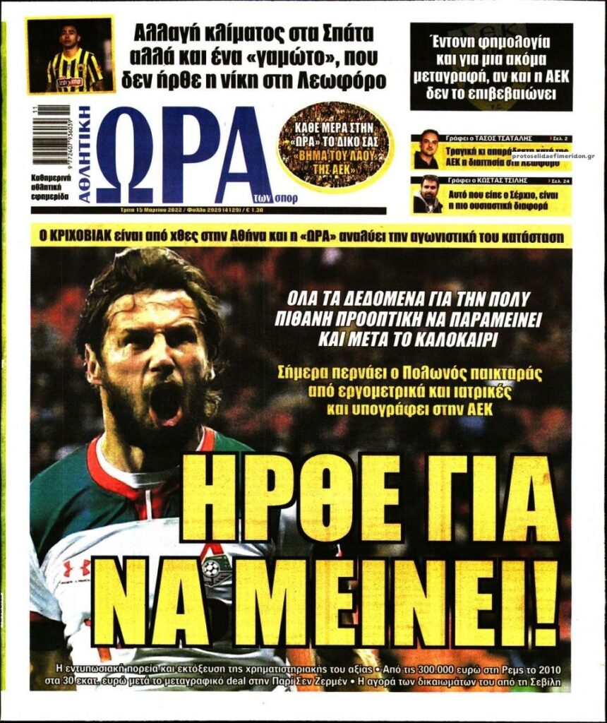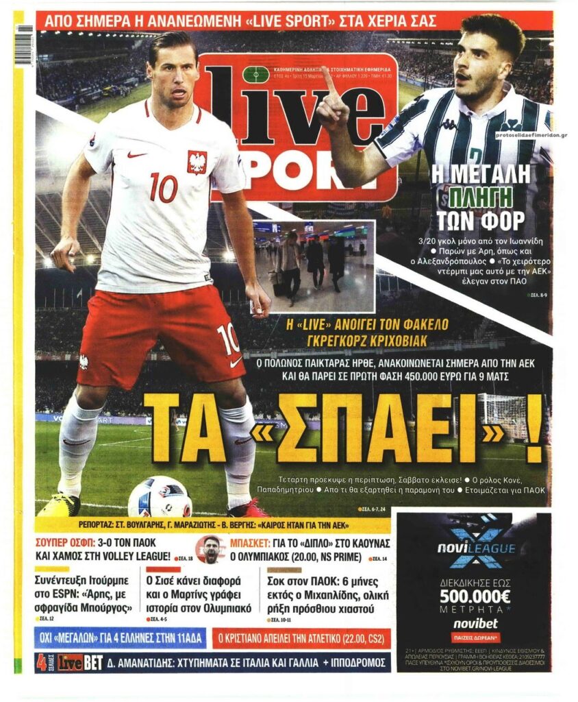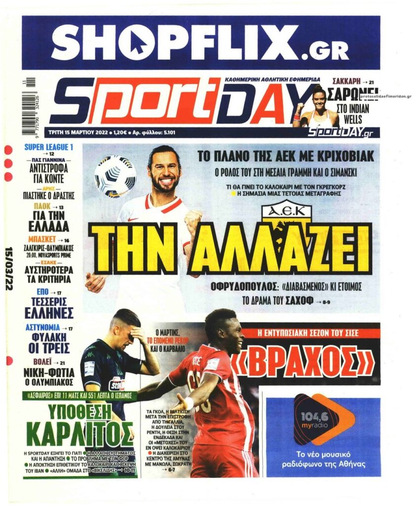 MEDIA Οι πρώτες σελίδες των αθλητικών εφημερίδων, σήμερα Τρίτη 15 Μαρτίου FacebookTwitterPinterestWhatsApp Οι πρώτες σελίδες των αθλητικών εφημερίδων, σήμερα Τρίτη 15 Μαρτίου