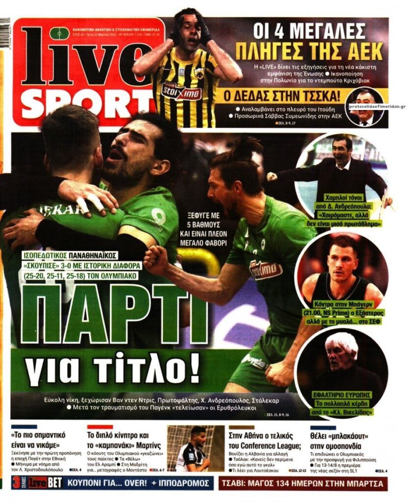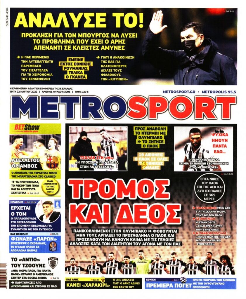 MEDIA Οι πρώτες σελίδες των αθλητικών εφημερίδων, σήμερα Τρίτη 22 Μαρτίου FacebookTwitterPinterestWhatsApp Οι πρώτες σελίδες των αθλητικών εφημερίδων, σήμερα Τρίτη 22 Μαρτίου