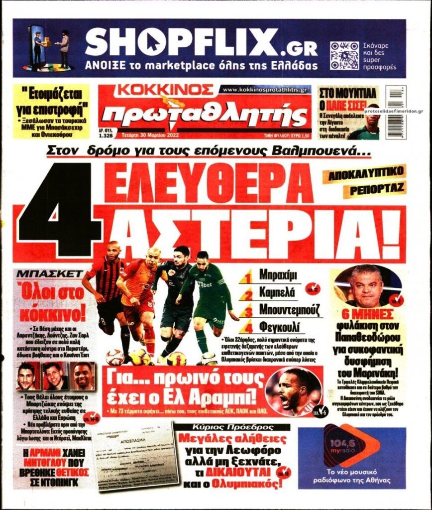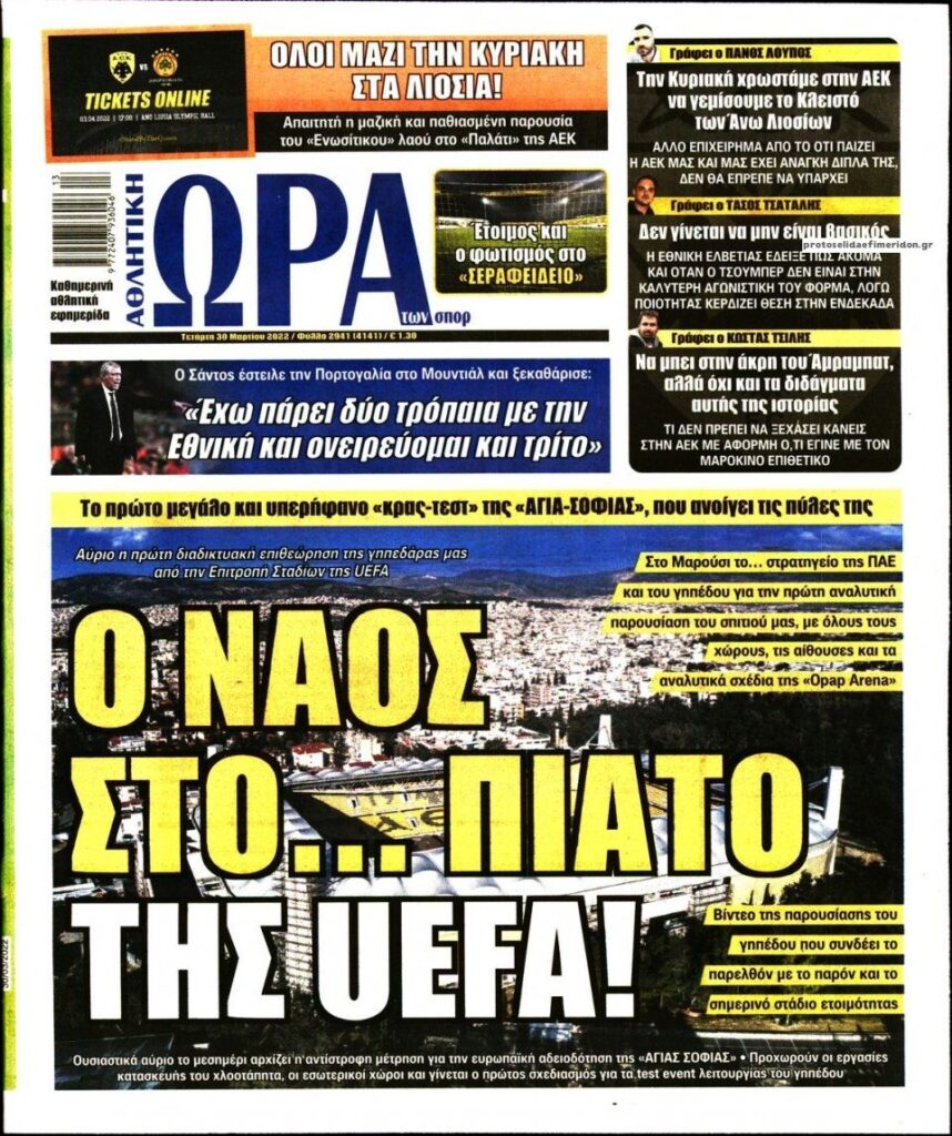 MEDIA Οι πρώτες σελίδες των αθλητικών εφημερίδων, σήμερα Τετάρτη 30 Μαρτίου FacebookTwitterPinterestWhatsApp Οι πρώτες σελίδες των αθλητικών εφημερίδων, σήμερα Τετάρτη 30 Μαρτίου