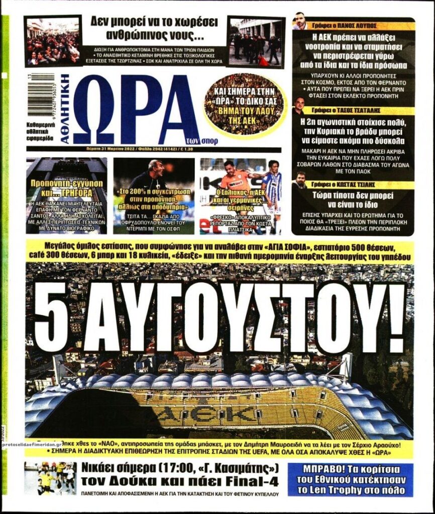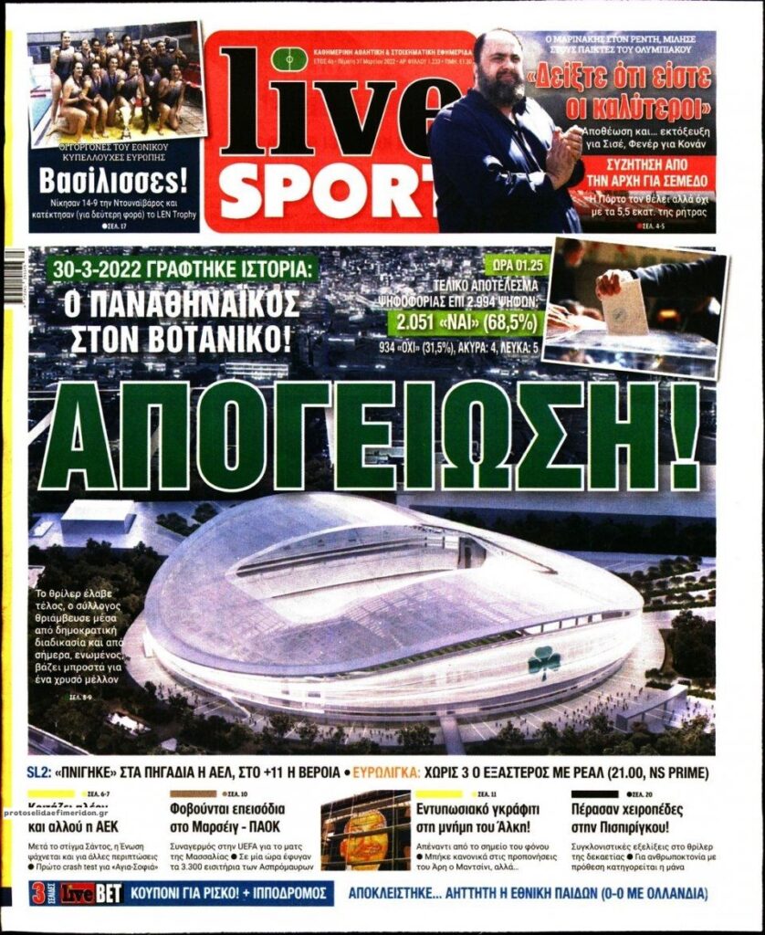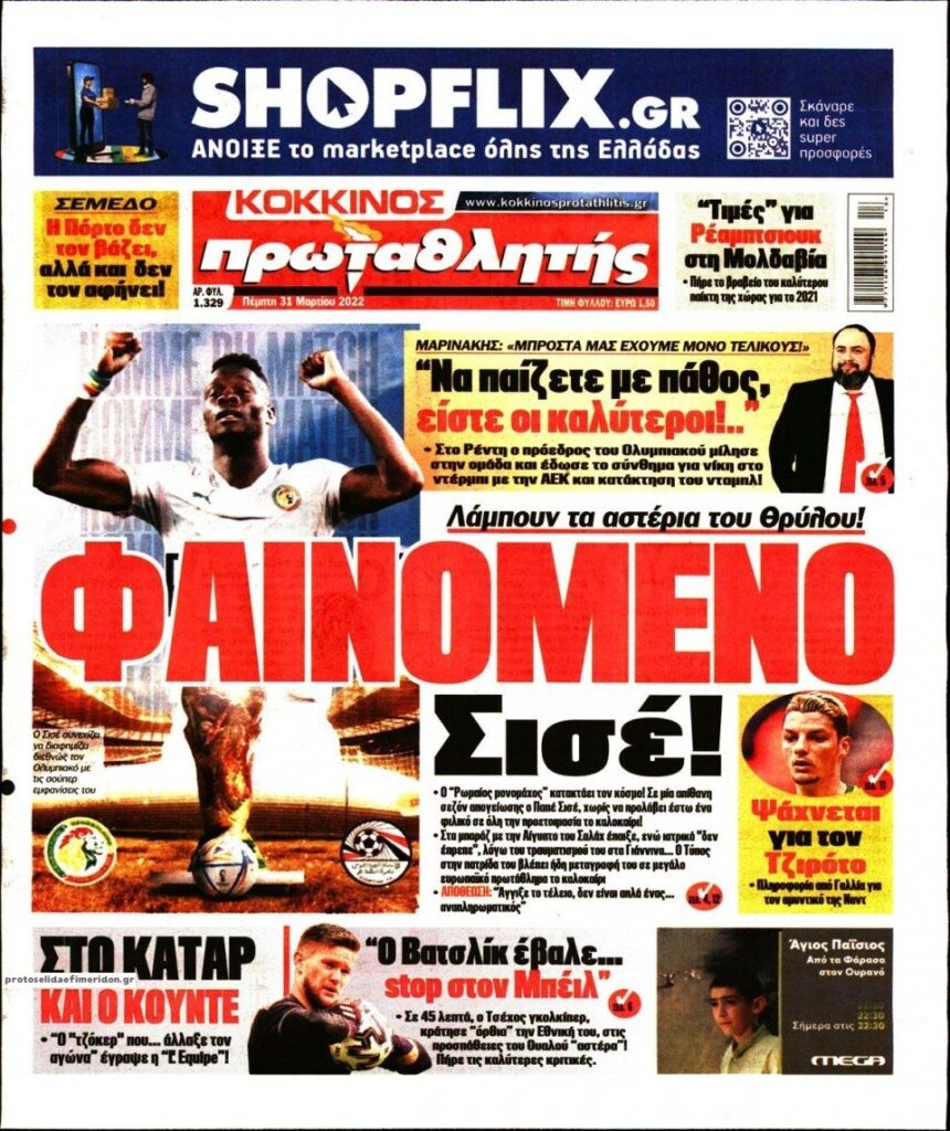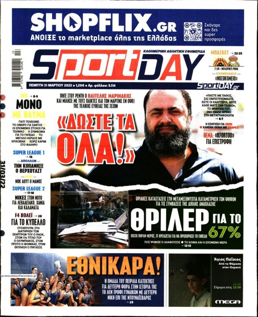 MEDIA Οι πρώτες σελίδες των αθλητικών εφημερίδων, σήμερα Πέμπτη 31 Μαρτίου FacebookTwitterPinterestWhatsApp Οι πρώτες σελίδες των αθλητικών εφημερίδων, σήμερα Πέμπτη 31 Μαρτίου
