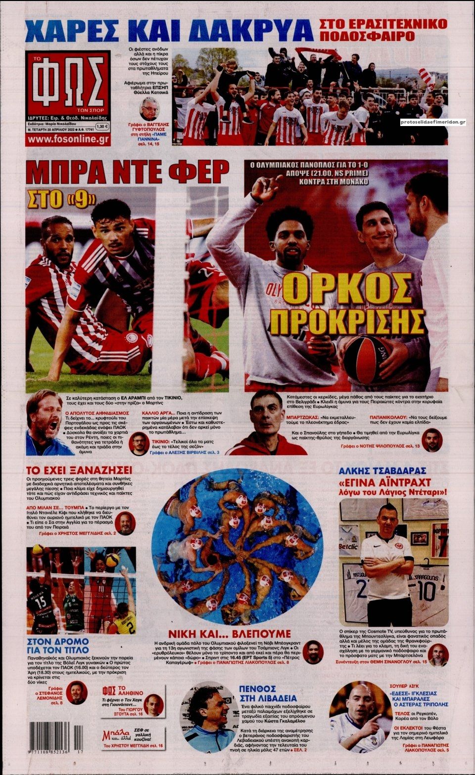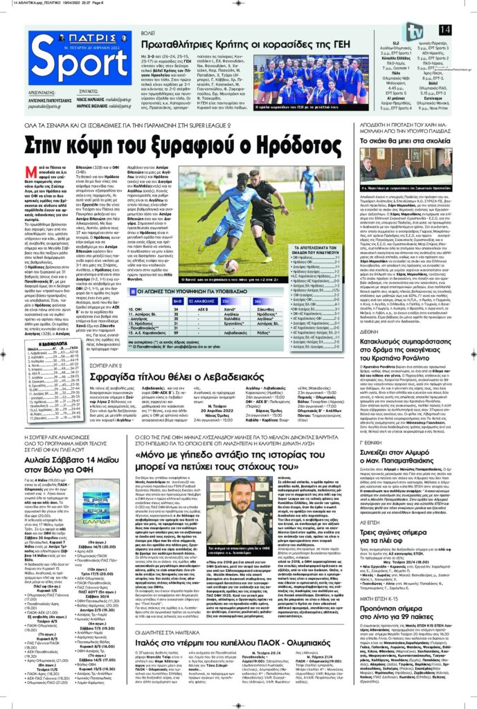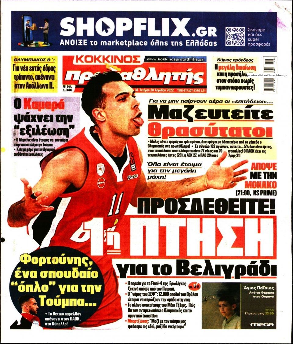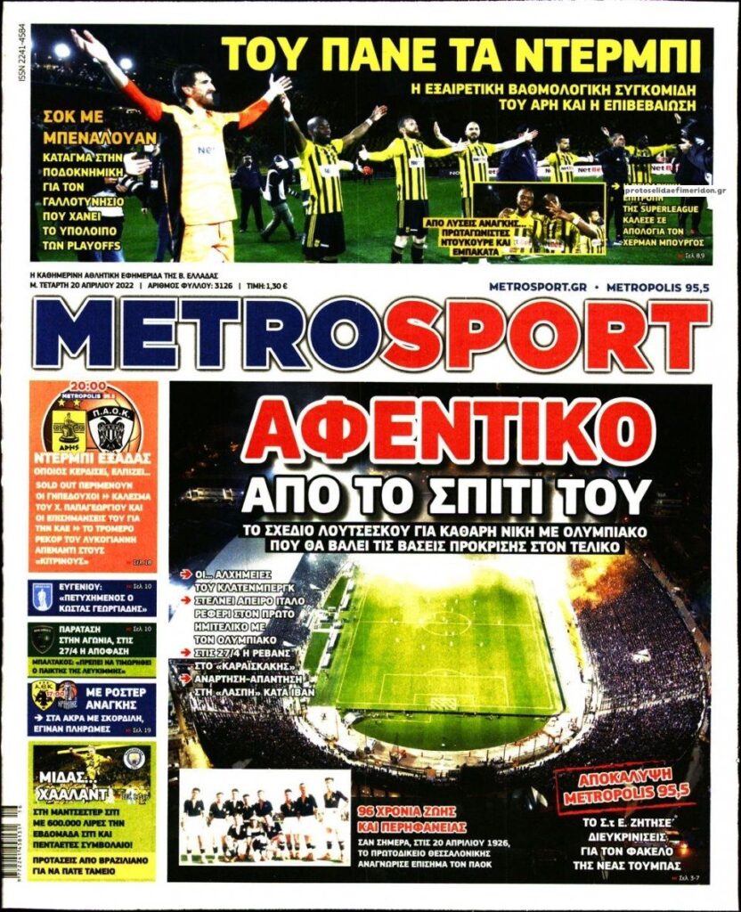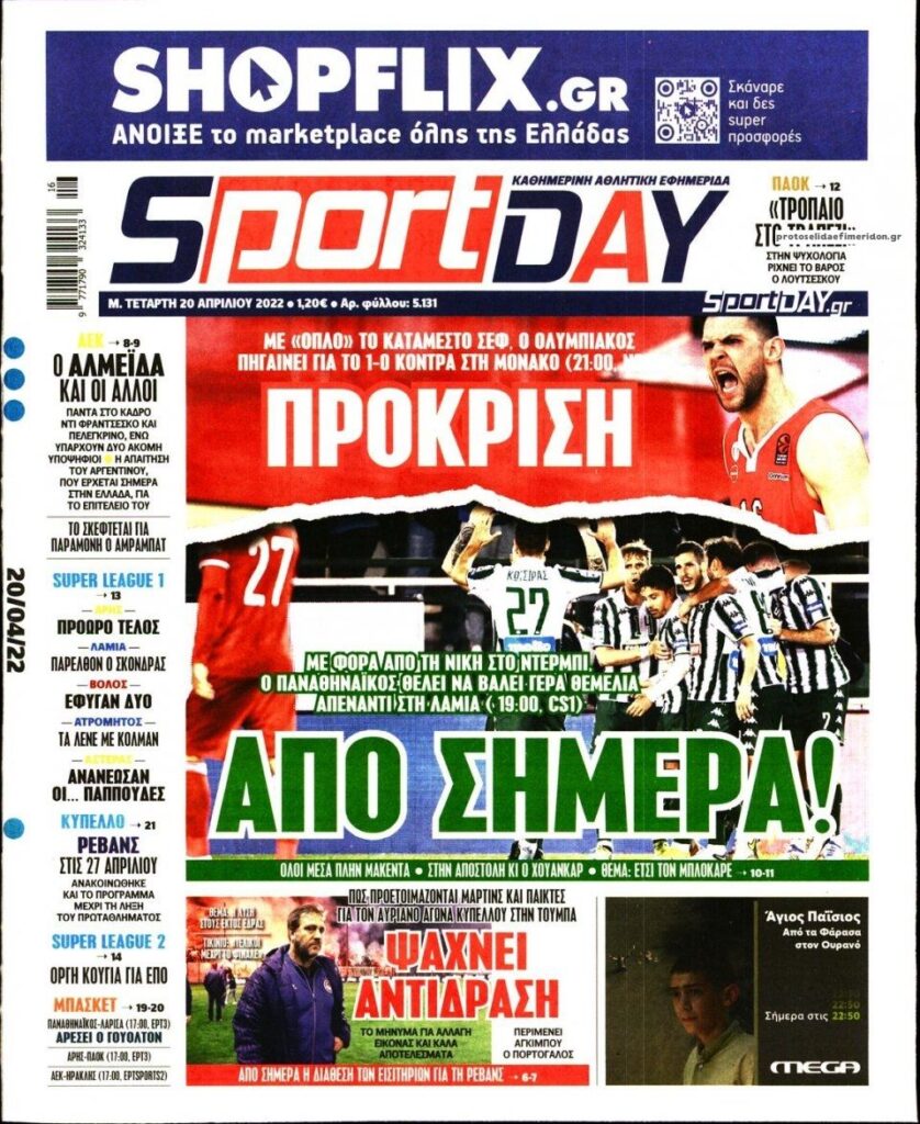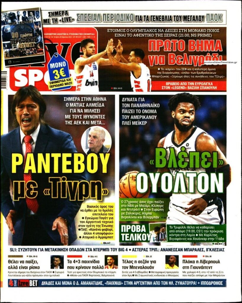 MEDIA Οι πρώτες σελίδες των αθλητικών εφημερίδων, σήμερα Μ. Τετάρτη 20 Απριλίου FacebookTwitterPinterestWhatsApp Οι πρώτες σελίδες των αθλητικών εφημερίδων, σήμερα Μ. Τετάρτη 20 Απριλίου