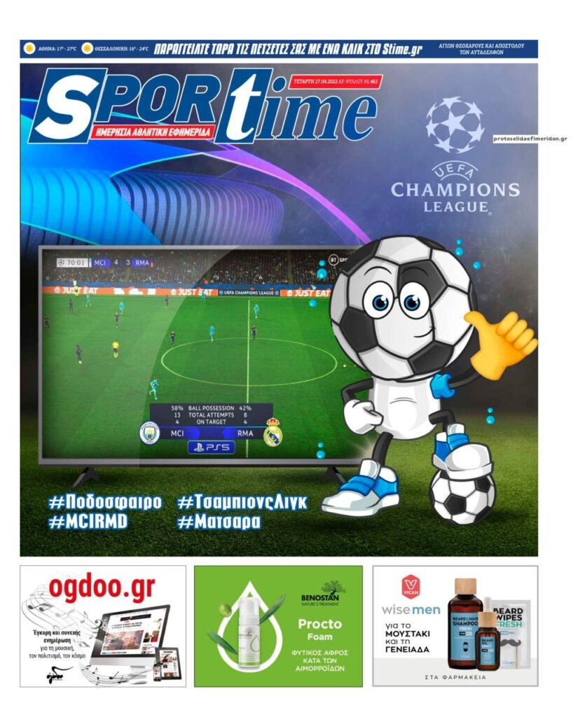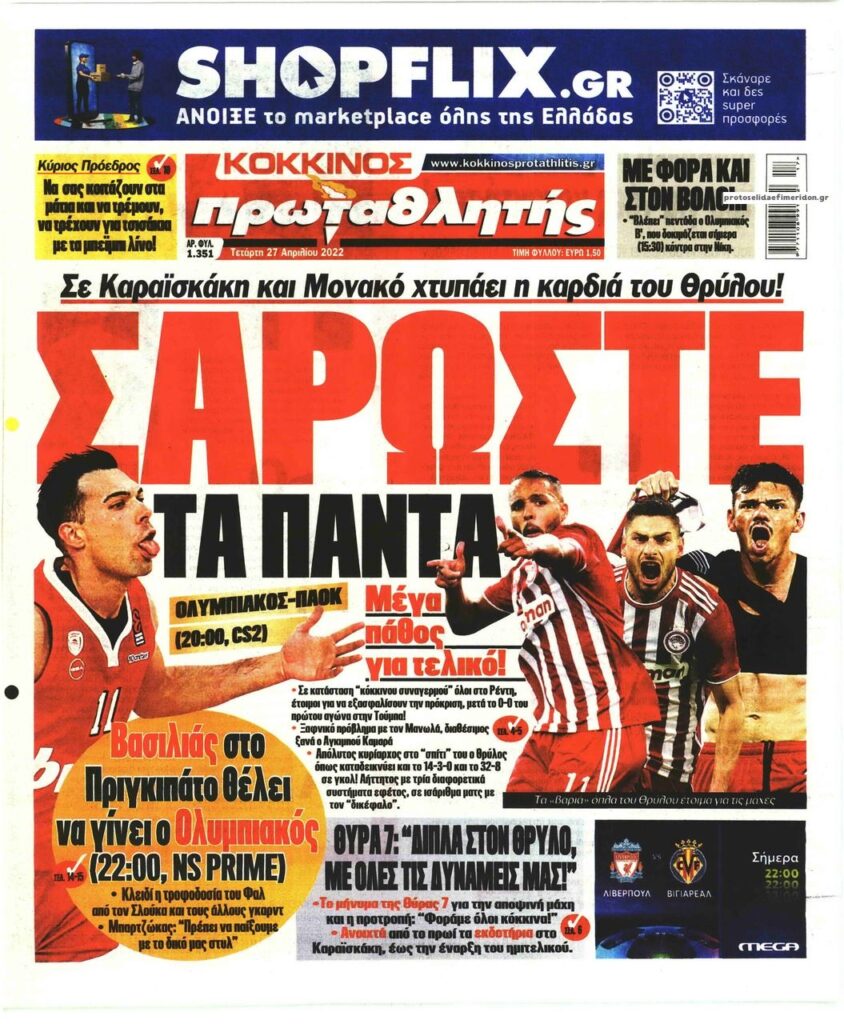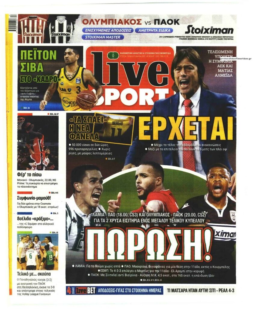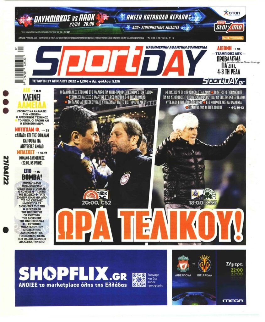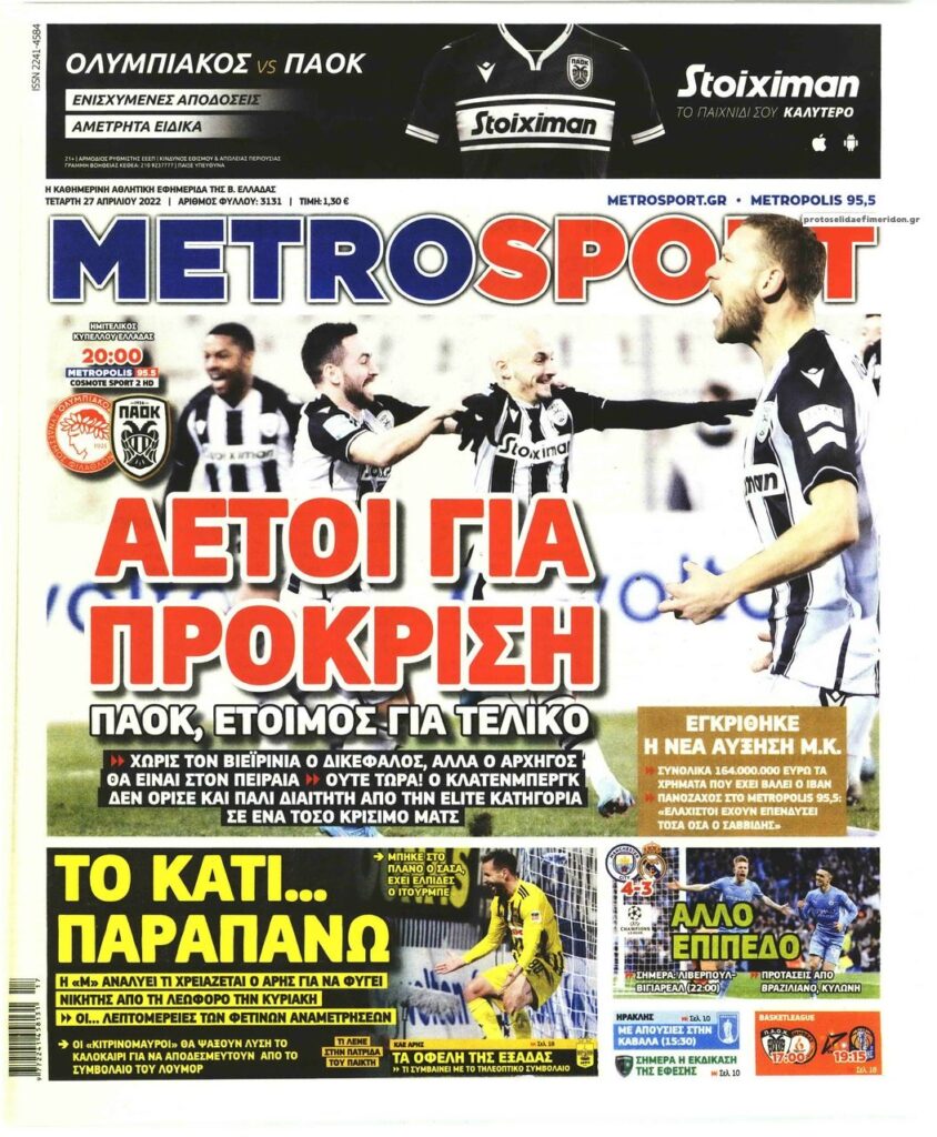 MEDIA Οι πρώτες σελίδες των αθλητικών εφημερίδων, σήμερα Τετάρτη 27 Απριλίου FacebookTwitterPinterestWhatsApp Οι πρώτες σελίδες των αθλητικών εφημερίδων, σήμερα Τετάρτη 27 Απριλίου