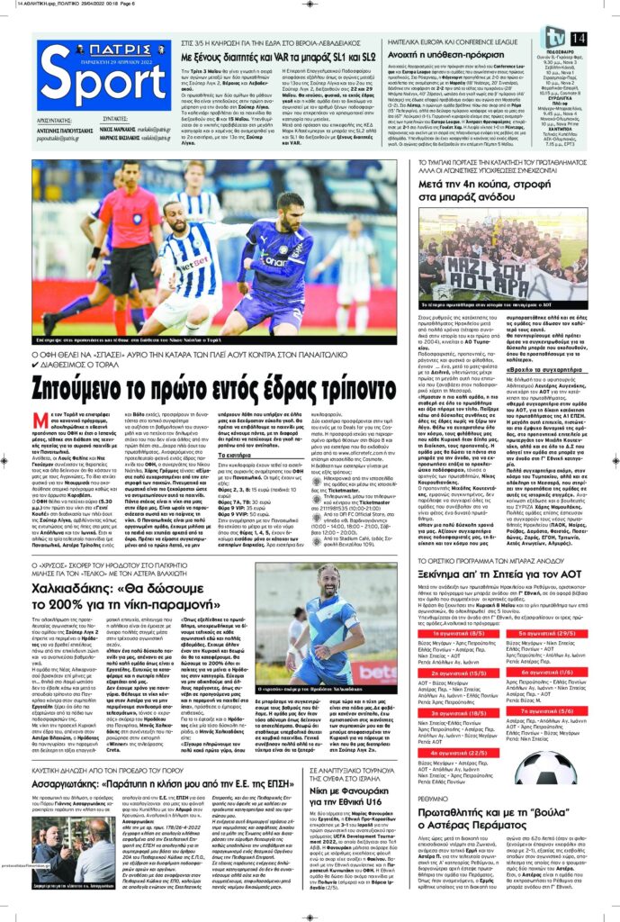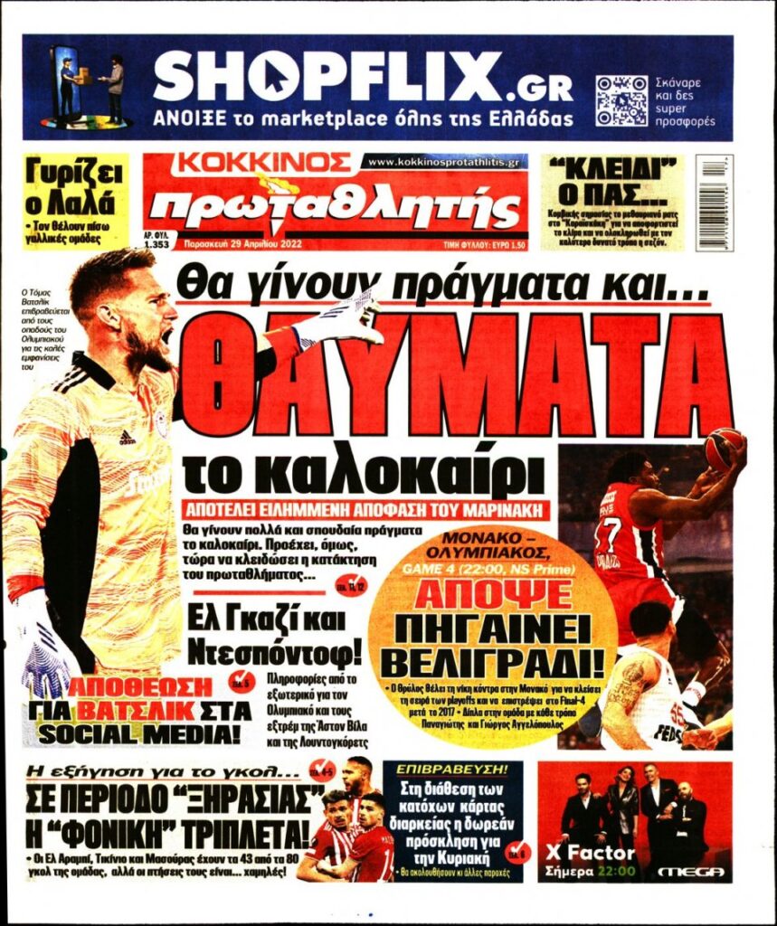 MEDIA Οι πρώτες σελίδες των αθλητικών εφημερίδων, σήμερα Παρασκευή 29 Απριλίου FacebookTwitterPinterestWhatsApp Οι πρώτες σελίδες των αθλητικών εφημερίδων, σήμερα Παρασκευή 29 Απριλίου