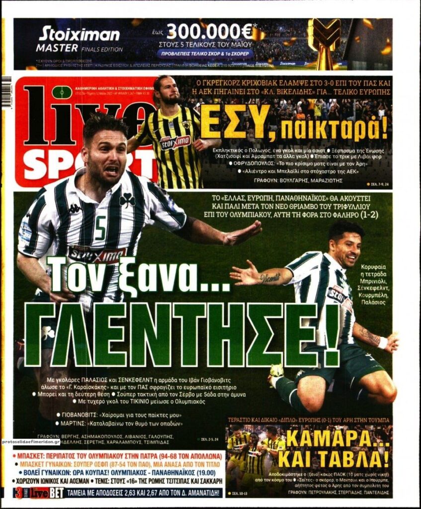 MEDIA Οι πρώτες σελίδες των αθλητικών εφημερίδων, σήμερα Πέμπτη 12 Μαΐου FacebookTwitterPinterestWhatsApp Οι πρώτες σελίδες των αθλητικών εφημερίδων, σήμερα Πέμπτη 12 Μαΐου