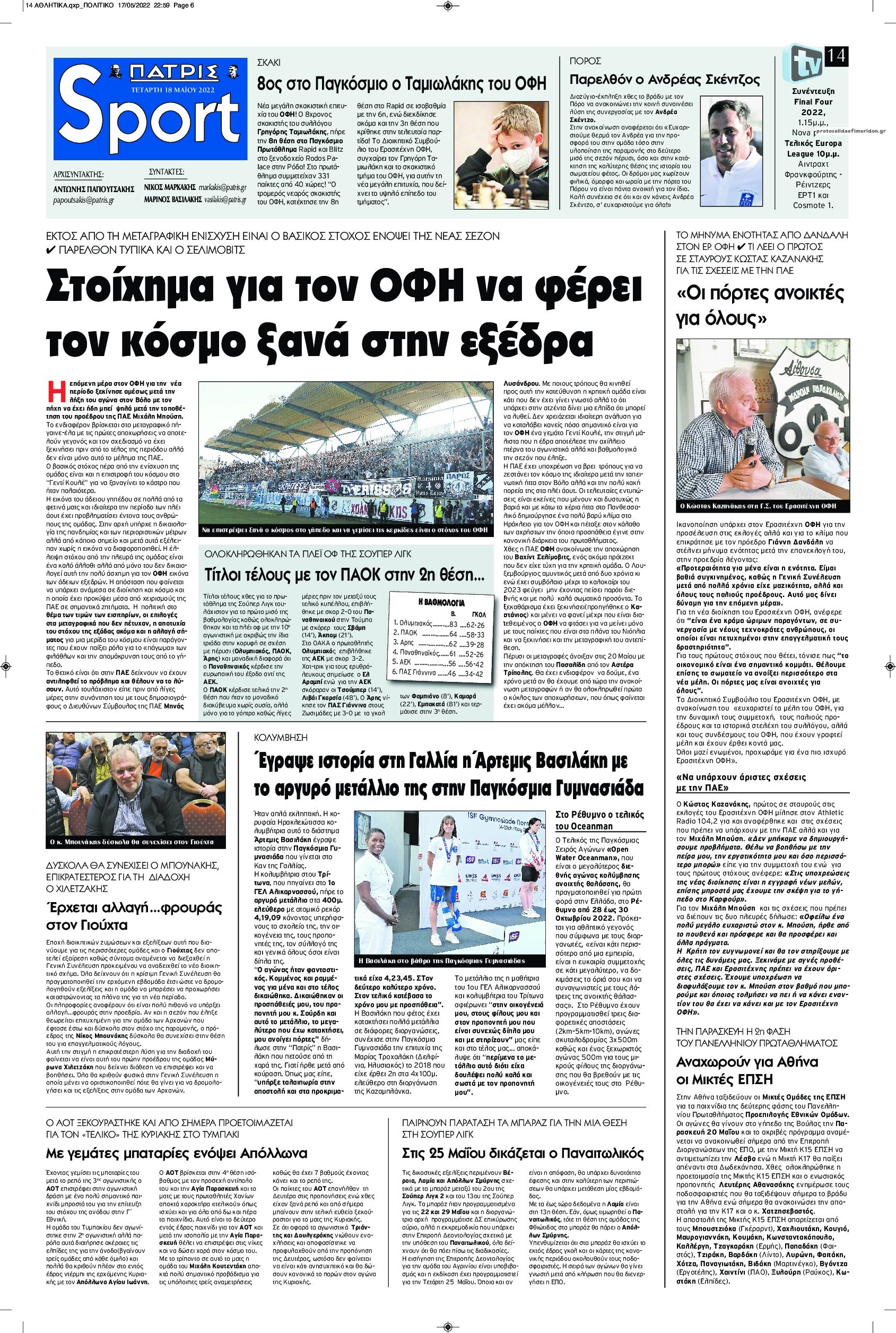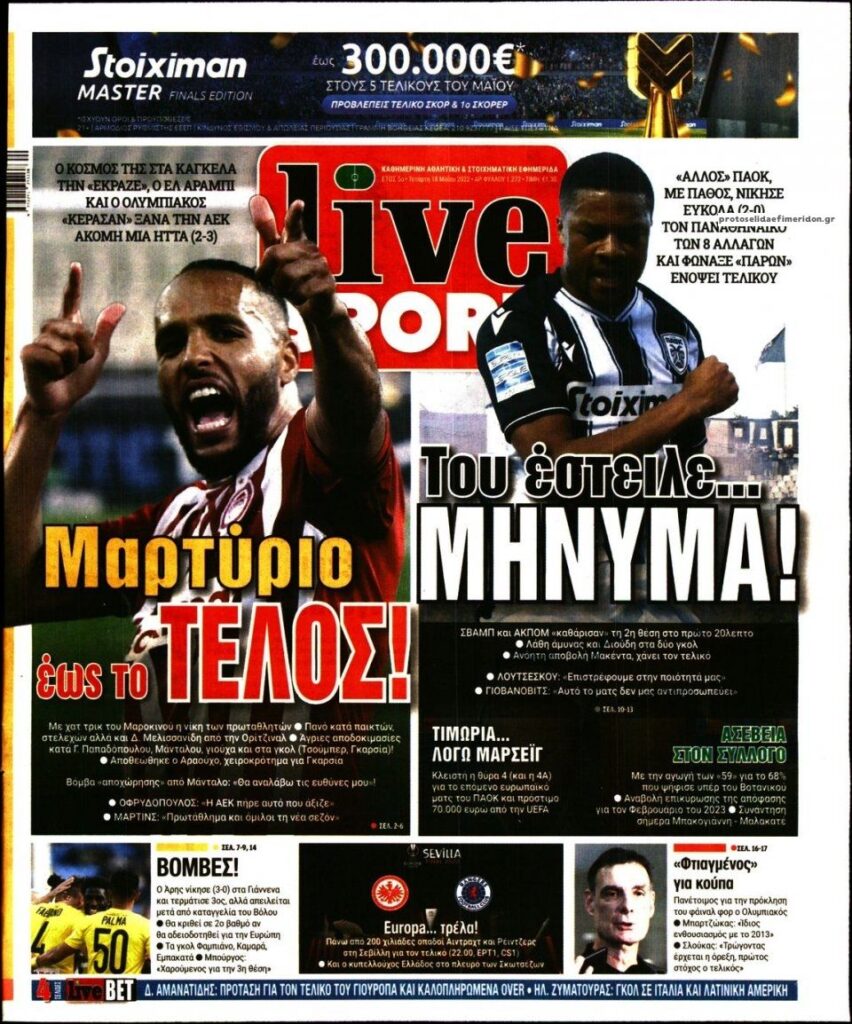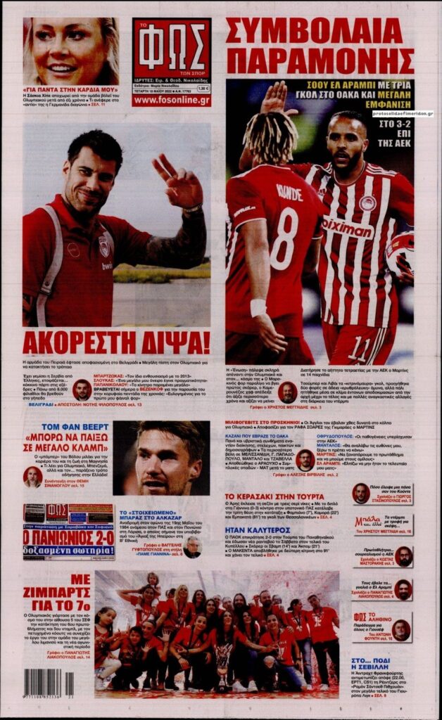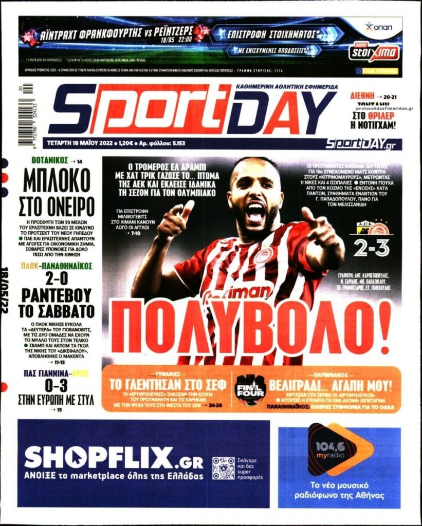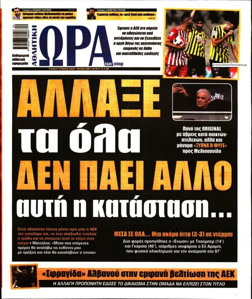 MEDIA Οι πρώτες σελίδες των αθλητικών εφημερίδων, σήμερα Τετάρτη 18 Μαΐου FacebookTwitterPinterestWhatsApp Οι πρώτες σελίδες των αθλητικών εφημερίδων, σήμερα Τετάρτη 18 Μαΐου