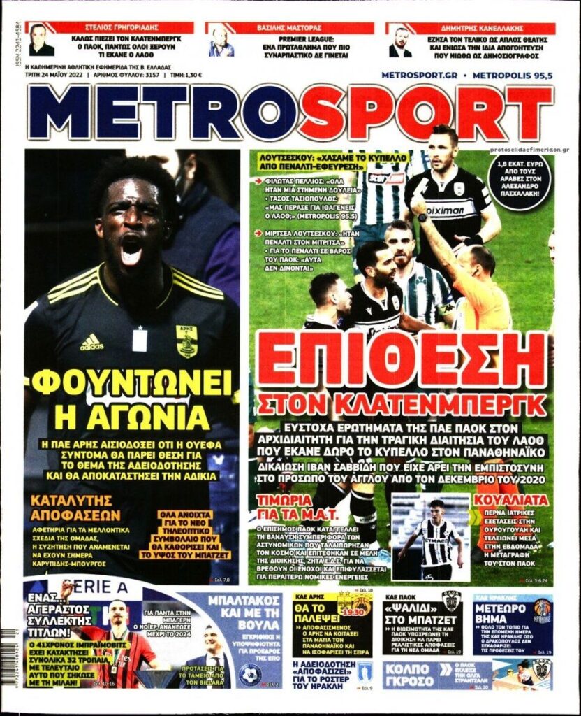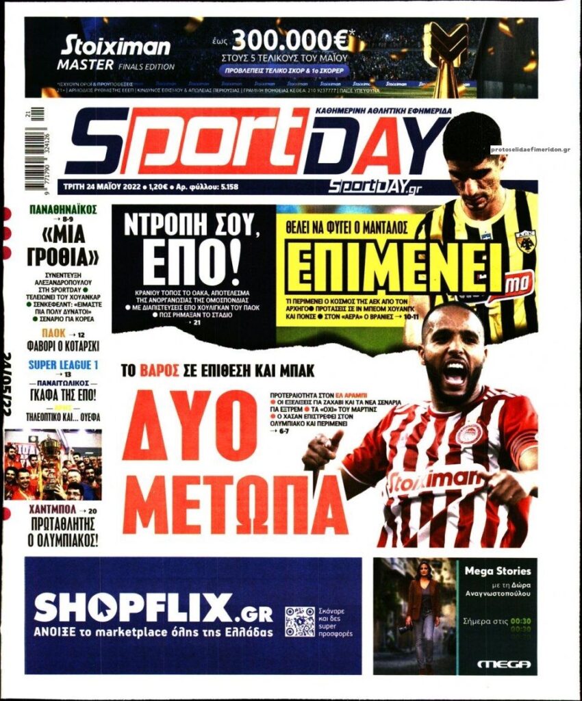 MEDIA Οι πρώτες σελίδες των αθλητικών εφημερίδων, σήμερα Τρίτη 24 Μαΐου FacebookTwitterPinterestWhatsApp Οι πρώτες σελίδες των αθλητικών εφημερίδων, σήμερα Τρίτη 24 Μαΐου