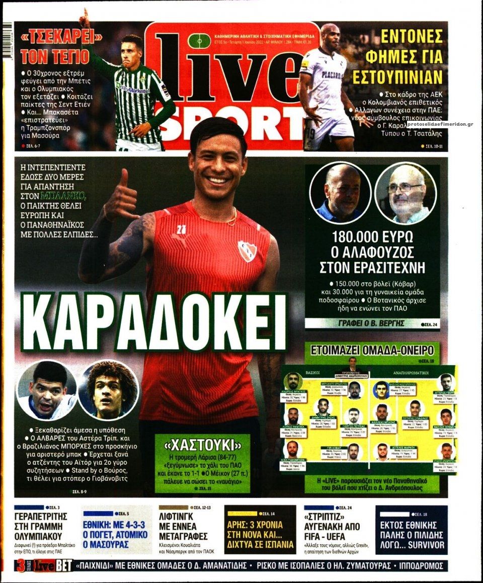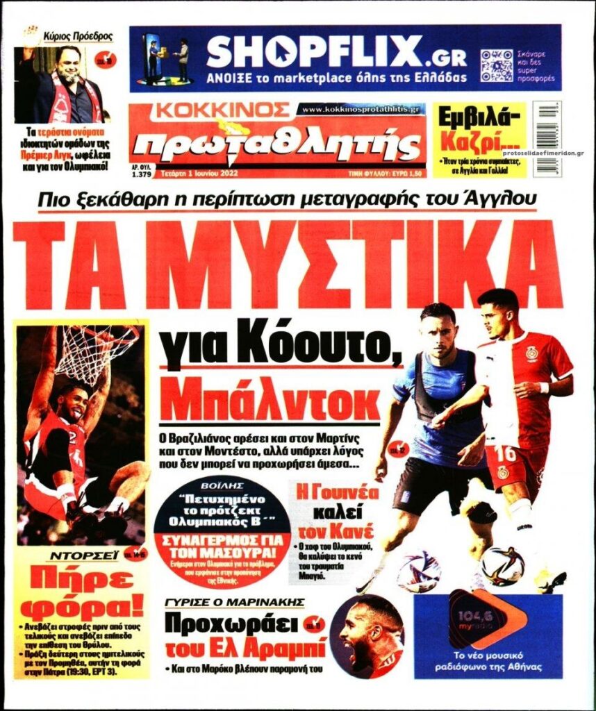 MEDIA Οι πρώτες σελίδες των αθλητικών εφημερίδων, σήμερα Τετάρτη 1η Ιουνίου FacebookTwitterPinterestWhatsApp Οι πρώτες σελίδες των αθλητικών εφημερίδων, σήμερα Τετάρτη 1η Ιουνίου