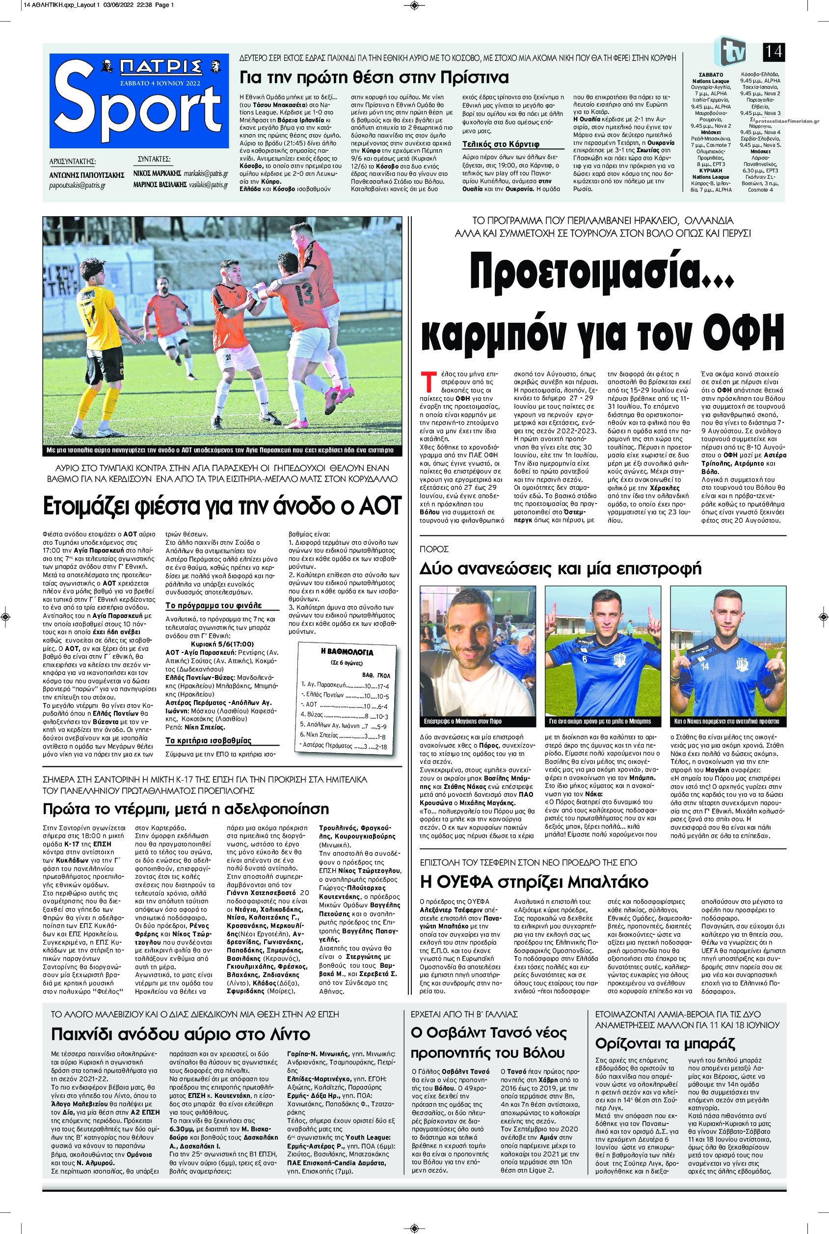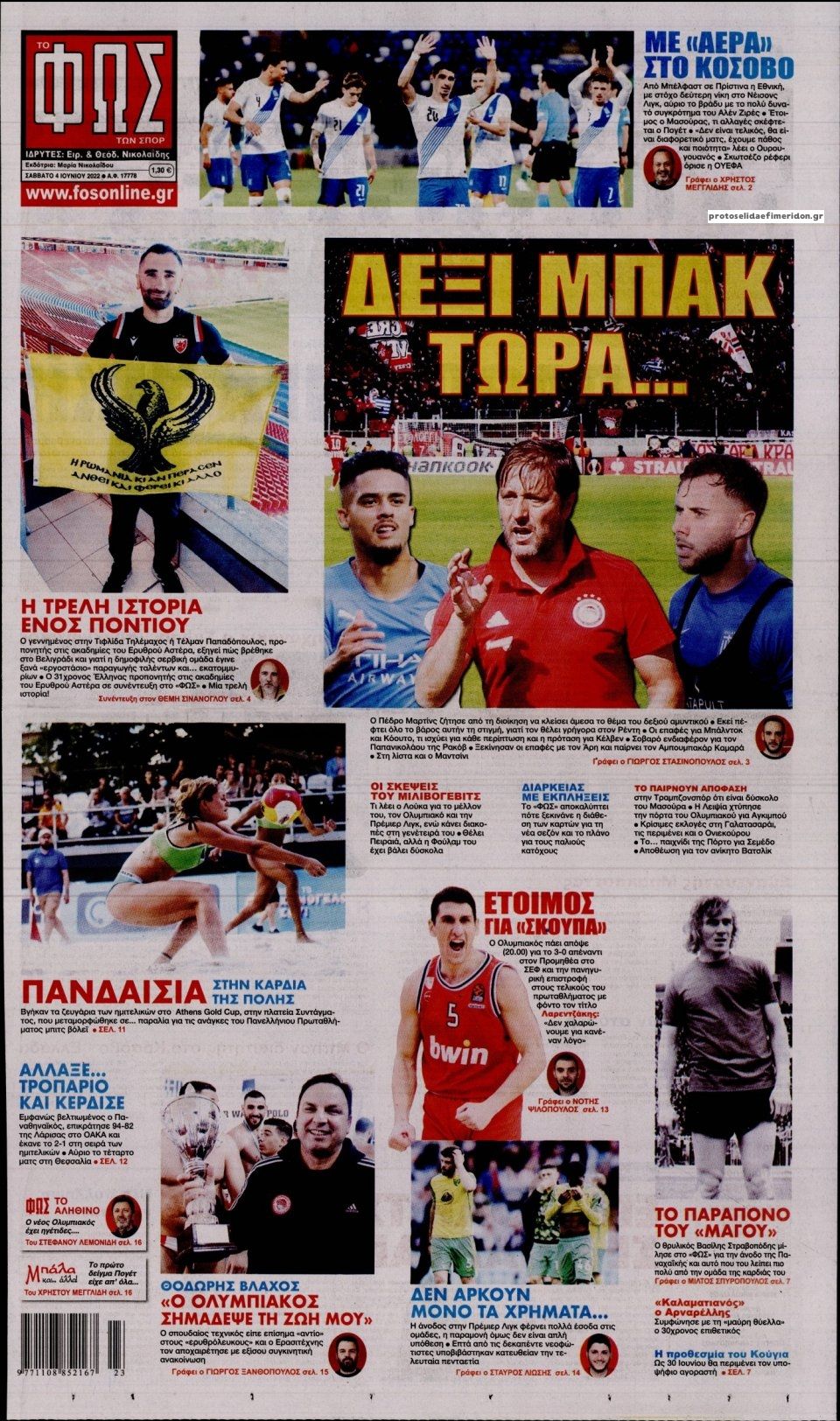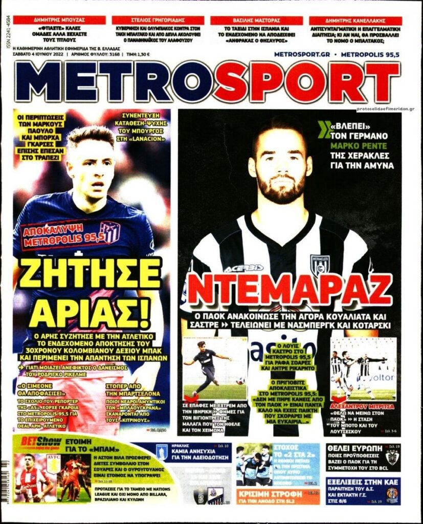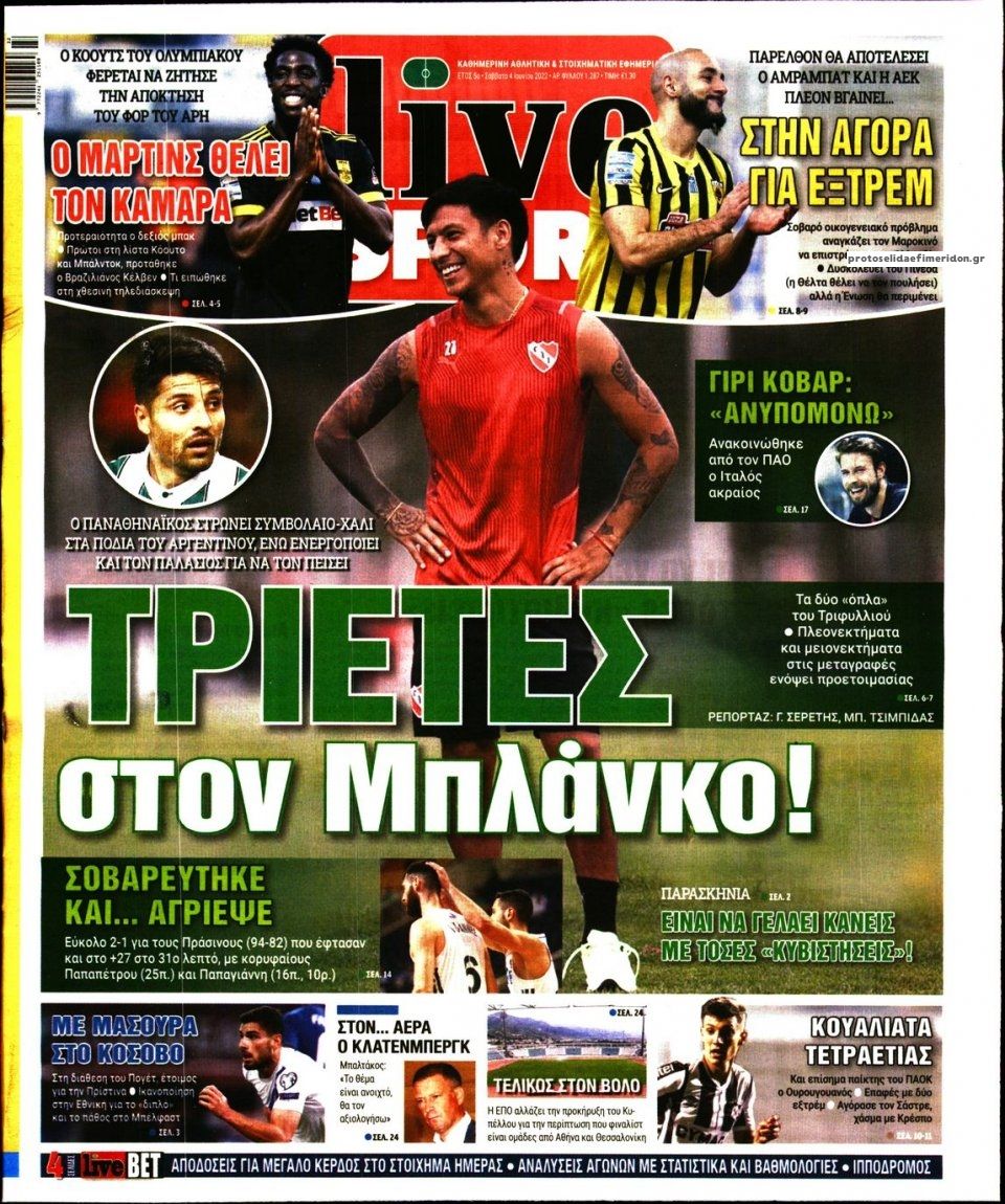 MEDIA Οι πρώτες σελίδες των αθλητικών εφημερίδων σήμερα Σάββατο 4 Ιουνίου FacebookTwitterPinterestWhatsApp Οι πρώτες σελίδες των αθλητικών εφημερίδων σήμερα Σάββατο 4 Ιουνίου