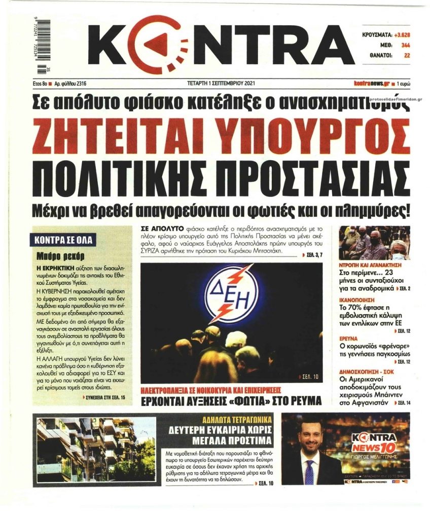 MEDIA Οι πρώτες σελίδες των εφημερίδων, σήμερα Τετάρτη 1η Σεπτεμβρίου FacebookTwitterPinterestWhatsApp Οι πρώτες σελίδες των εφημερίδων, σήμερα Τετάρτη 1η Σεπτεμβρίου