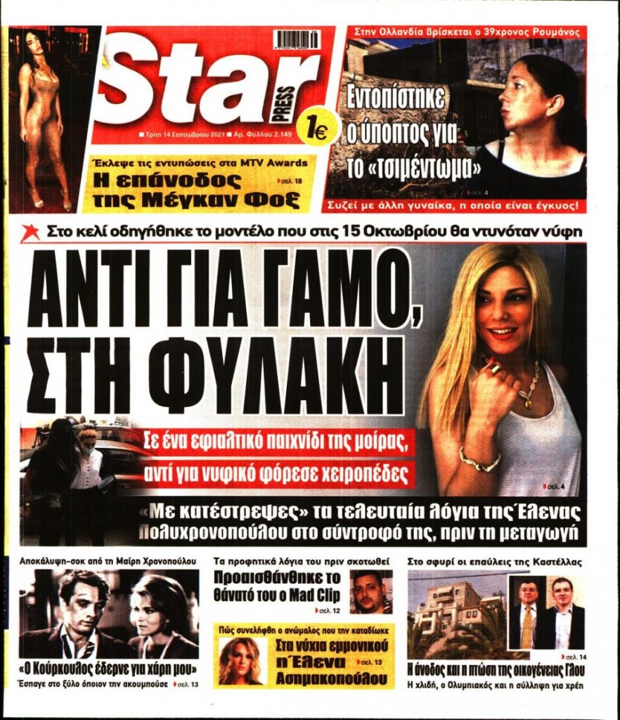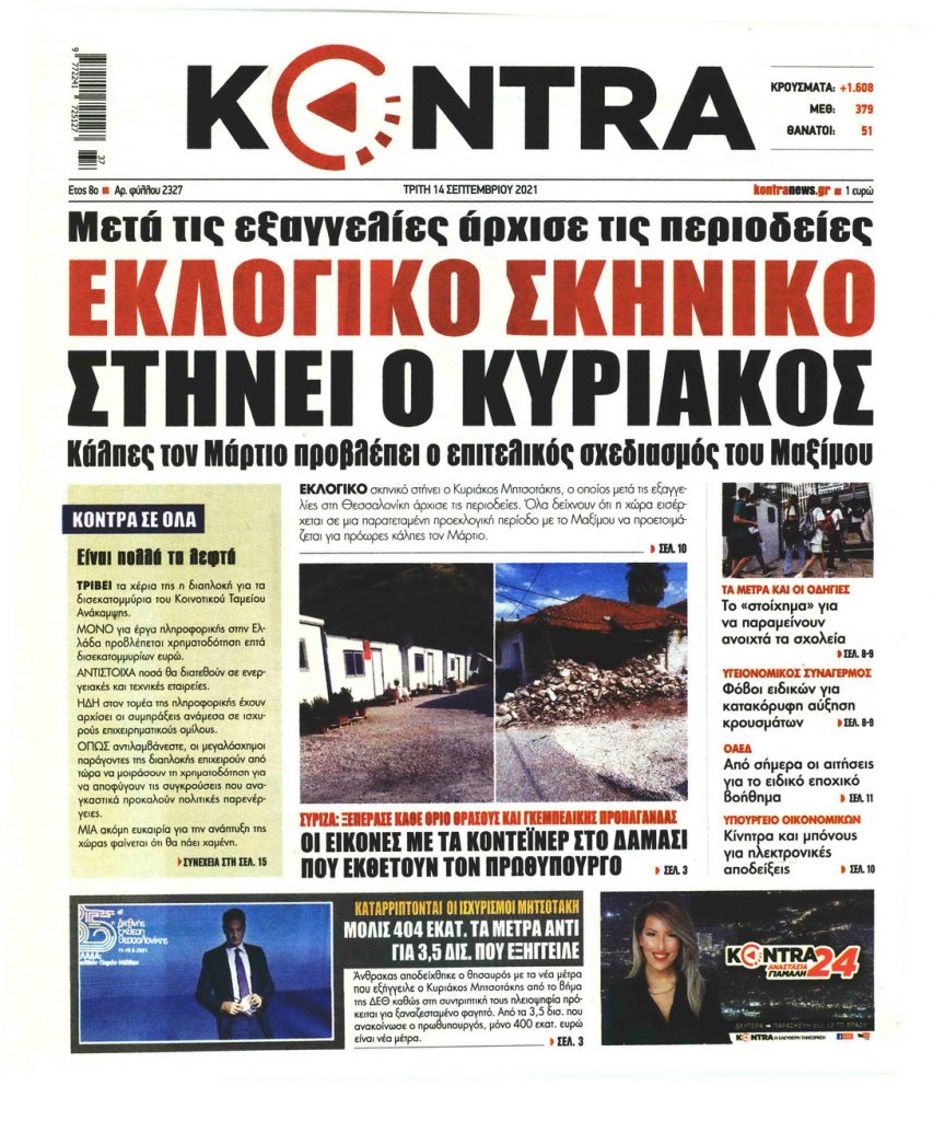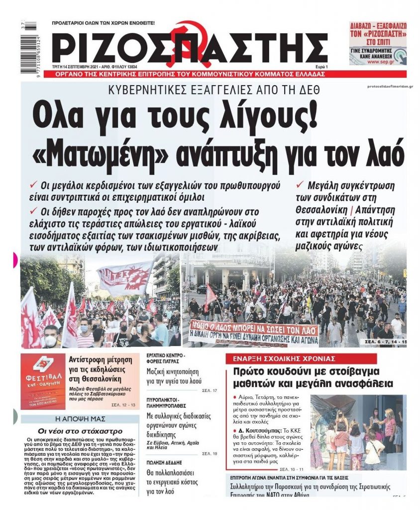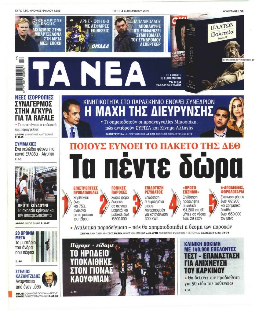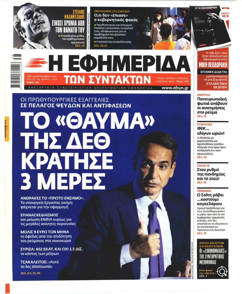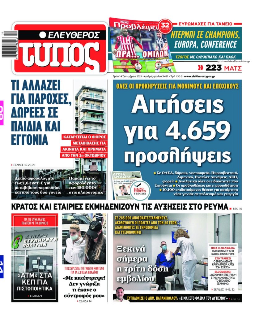 MEDIA Οι πρώτες σελίδες των εφημερίδων, σήμερα Τρίτη 14 Σεπτεμβρίου FacebookTwitterPinterestWhatsApp Οι πρώτες σελίδες των εφημερίδων, σήμερα Τρίτη 14 Σεπτεμβρίου