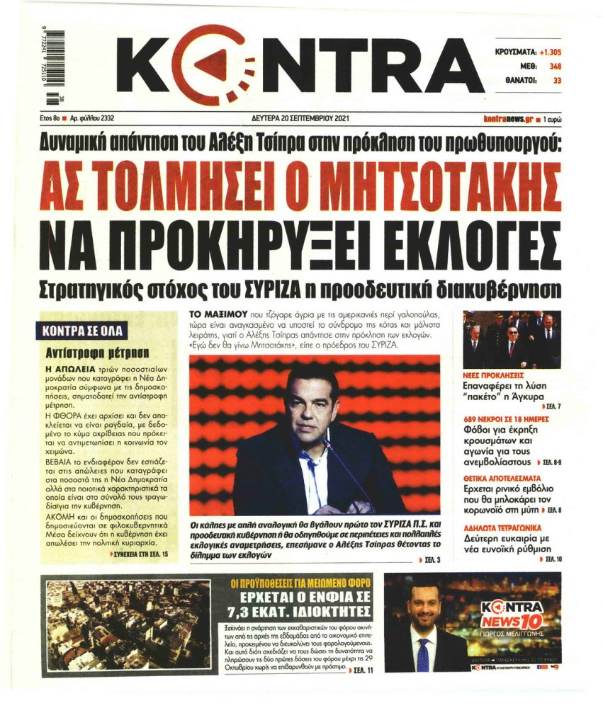 MEDIA Οι πρώτες σελίδες των εφημερίδων, σήμερα Δευτέρα 20 Σεπτεμβρίου FacebookTwitterPinterestWhatsApp Οι πρώτες σελίδες των εφημερίδων, σήμερα Δευτέρα 20 Σεπτεμβρίου