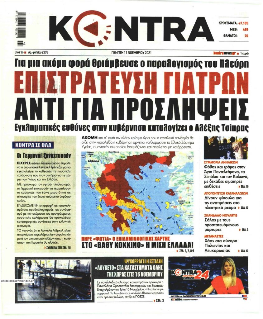 MEDIA Οι πρώτες σελίδες των εφημερίδων, σήμερα Πέμπτη 11 Νοεμβρίου FacebookTwitterPinterestWhatsApp Οι πρώτες σελίδες των εφημερίδων, σήμερα Πέμπτη 11 Νοεμβρίου