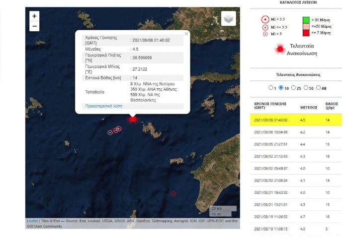 Σεισμική δόνηση 4,5 βαθμών της κλίμακας Ρίχτερ κοντά στη Νίσυρο