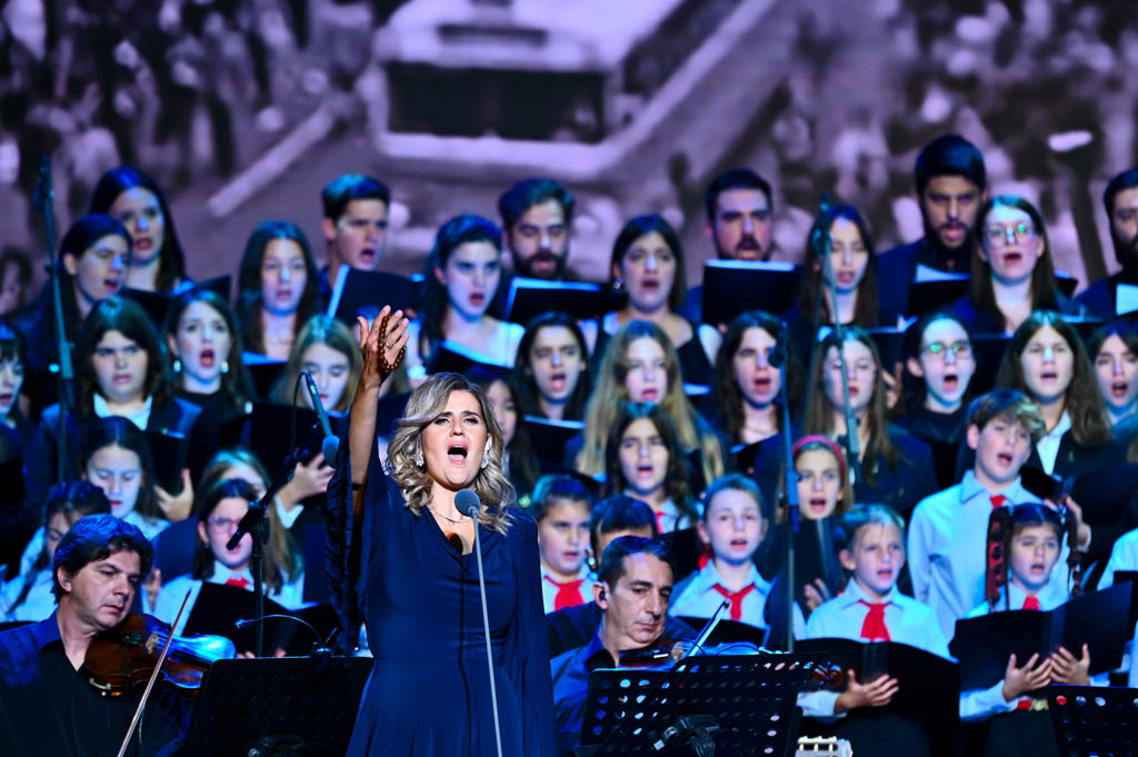 Το μεγαλείο της παράστασης συμπλήρωσαν η 50μελής Μικτή Νεανική Χορωδία της Ιεράς Αρχιεπισκοπής Αθηνών υπό τη διεύθυνση του Παύλου Κόρδη και η 80μελής Χορωδία Choeur du Cœur της Ελληνογαλλικής Σχολής Saint Joseph υπό τη διεύθυνση της Ιφιγένειας Κουρούση και του Αναστάσιου Σιδηρόπουλου. Με τις φωνές τους, οι νέοι αυτοί ερμηνευτές ύφαναν ένα συγκινητικό χαλί μνήμης και ελπίδας, που αγκάλιασε ολόκληρη την αίθουσα.