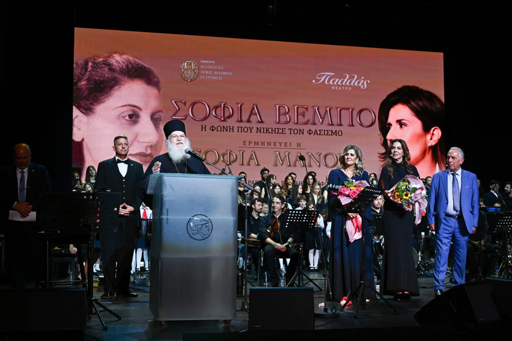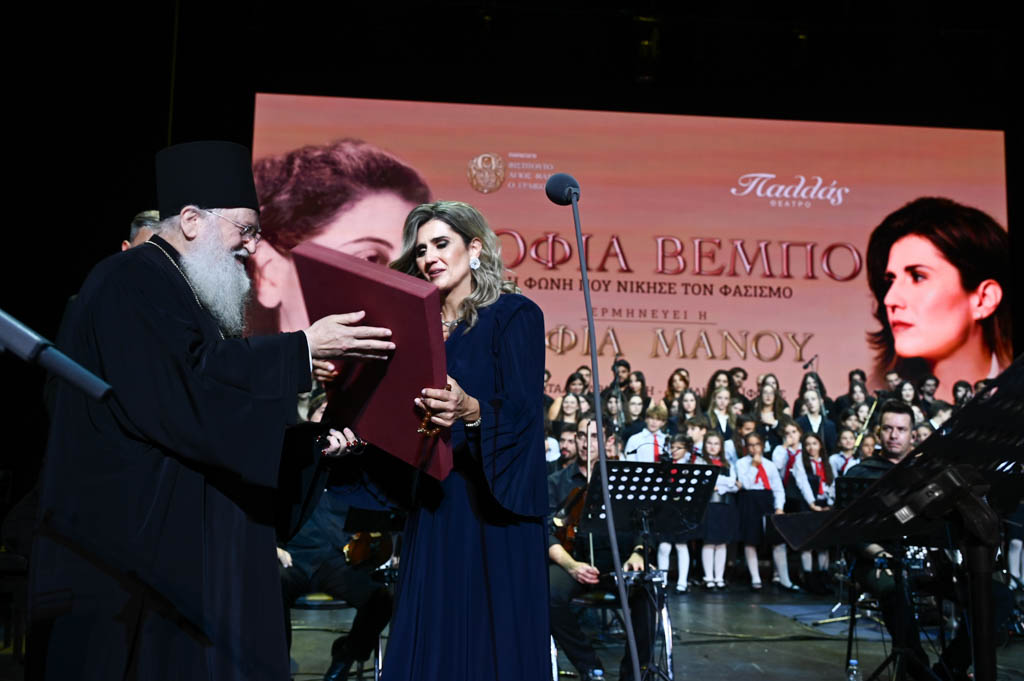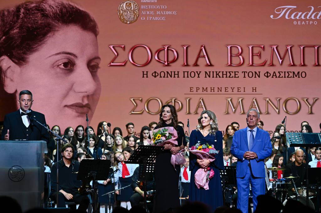 Με αυτά τα λόγια, αναφερόμενος στο πρόσωπο της Σοφίας Μάνου, ο Διευθυντής Ανάπτυξης του Ινστιτούτου Άγιος Μάξιμος ο Γραικός κ. Νίκος Γκουράρος έκλεισε τη μεγαλειώδη συναυλία στο κατάμεστο Θέατρο Παλλάς την Τρίτη 14 Οκτωβρίου. Μια βραδιά που απέδειξε ότι η φωνή της Βέμπο, μέσα από τη σημερινή ερμηνεία της Σοφίας Μάνου, εξακολουθεί να εμπνέει και να ενώνει, φέρνοντας στο παρόν το μήνυμα της μνήμης, της ελπίδας και της πατρίδας.