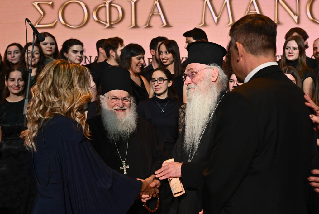 Ο Γέροντας Εφραίμ, με λόγια που άγγιξαν τις καρδιές όλων, στάθηκε με βαθιά συγκίνηση απέναντι στη Σοφία Μάνου. Την ευχαρίστησε θερμά για την ερμηνεία της και τόνισε πως «μια φωνή που κουβαλά τόση αλήθεια και ψυχή γίνεται προσευχή για την πατρίδα, βάλσαμο για τον πόνο των ανθρώπων και ελπίδα για τους νέους». Ο λόγος του δεν ήταν μόνο έπαινος, αλλά αναγνώριση της αποστολής που φέρει η τέχνη όταν ενσαρκώνεται από πρόσωπα με ήθος και δύναμη, όπως η Σοφία Μάνου. Η αίθουσα σείστηκε από συγκίνηση, καθώς τα λόγια του Γέροντα αντήχησαν σαν ευλογία και πνευματική σφραγίδα στην πορεία της ερμηνεύτριας.