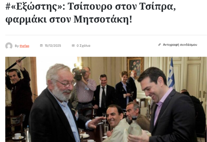 #«Εξώστης»: Τσίπουρο στον Τσίπρα, φαρμάκι στον Μητσοτάκη!
